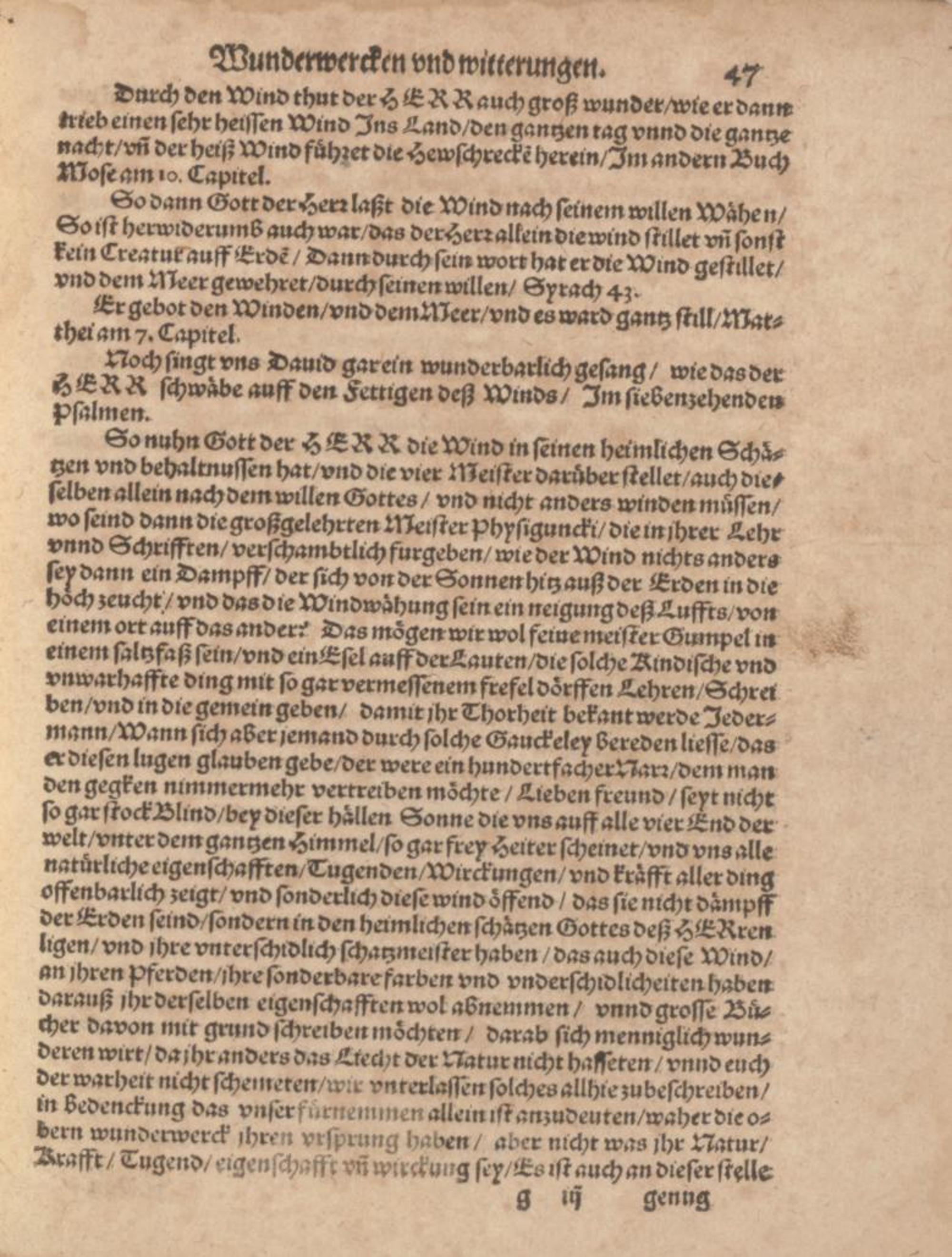 3 (1585) 3 Von Oberen Wunderwercken vnd Witterungen : Darinn mit gruud der warheit dargethan wirt daß alle Witterungen, wie sich die immer erzeigen mögen, nicht auß vergeblichem zufall, sondern auß wolbewußter fürsehung Gottes, auß den. H. himlischee Schatzkästen GOttes, mit gnaden mit vngnaden, wie wirs verdienen, herab zu vns kommen / inn Truck verfertiget von Samuele Siderocrate [i.e. Samuel Eisenmenger] ...