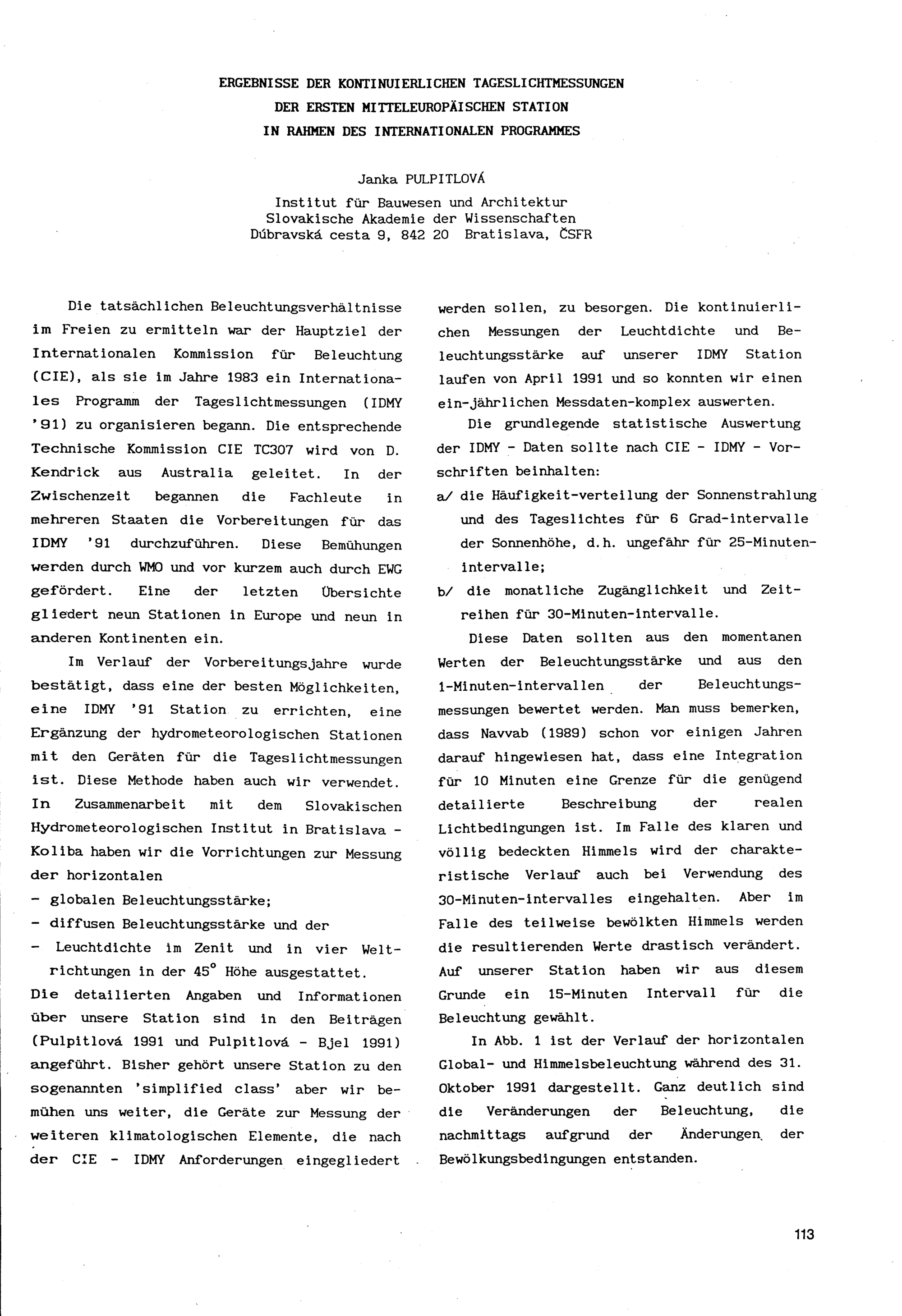 Ergebnisse der kontinuierlichen Tageslichtmessungen der ersten mitteleuropäischen...