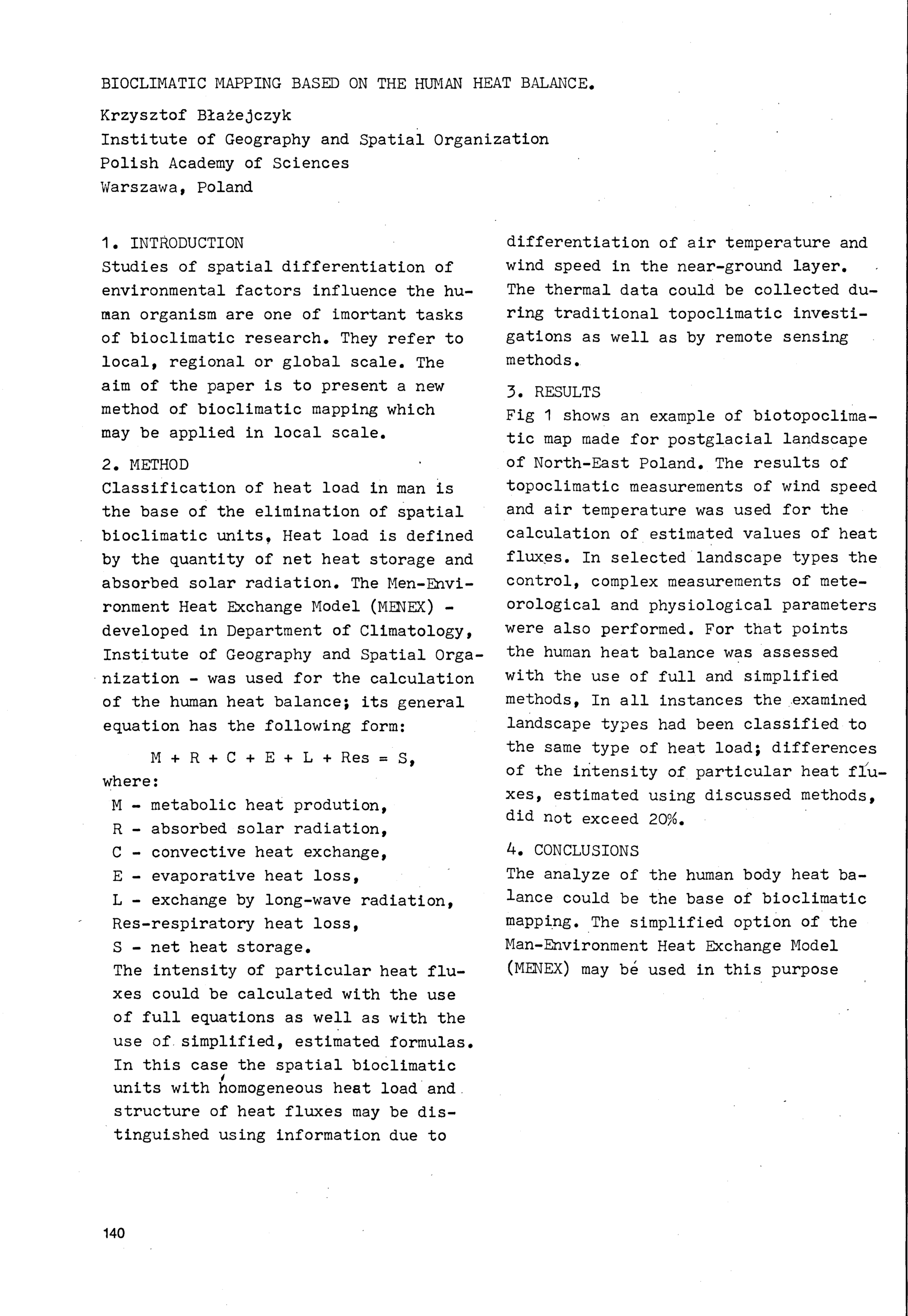 Bioclimatic Mapping based on the Human Heat Balance