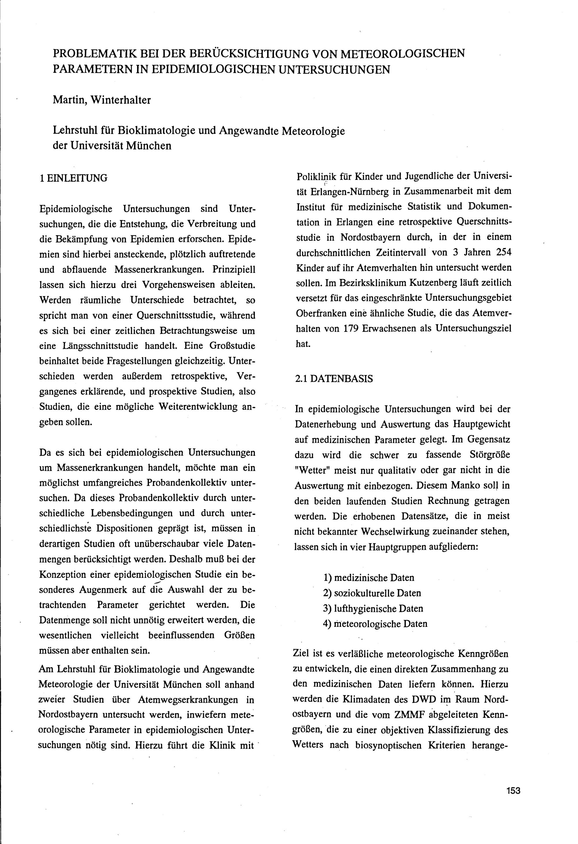 Problematik bei der Berücksichtigung von meteorologischen Parametern in epidemiologischen...