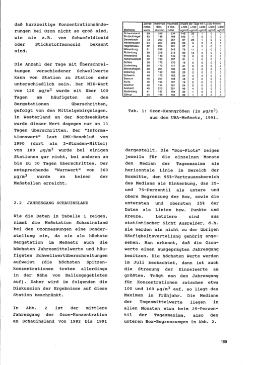 Ozonmessungen an den Meßstellen des UBA, insbesondere auf dem Schauinsland
