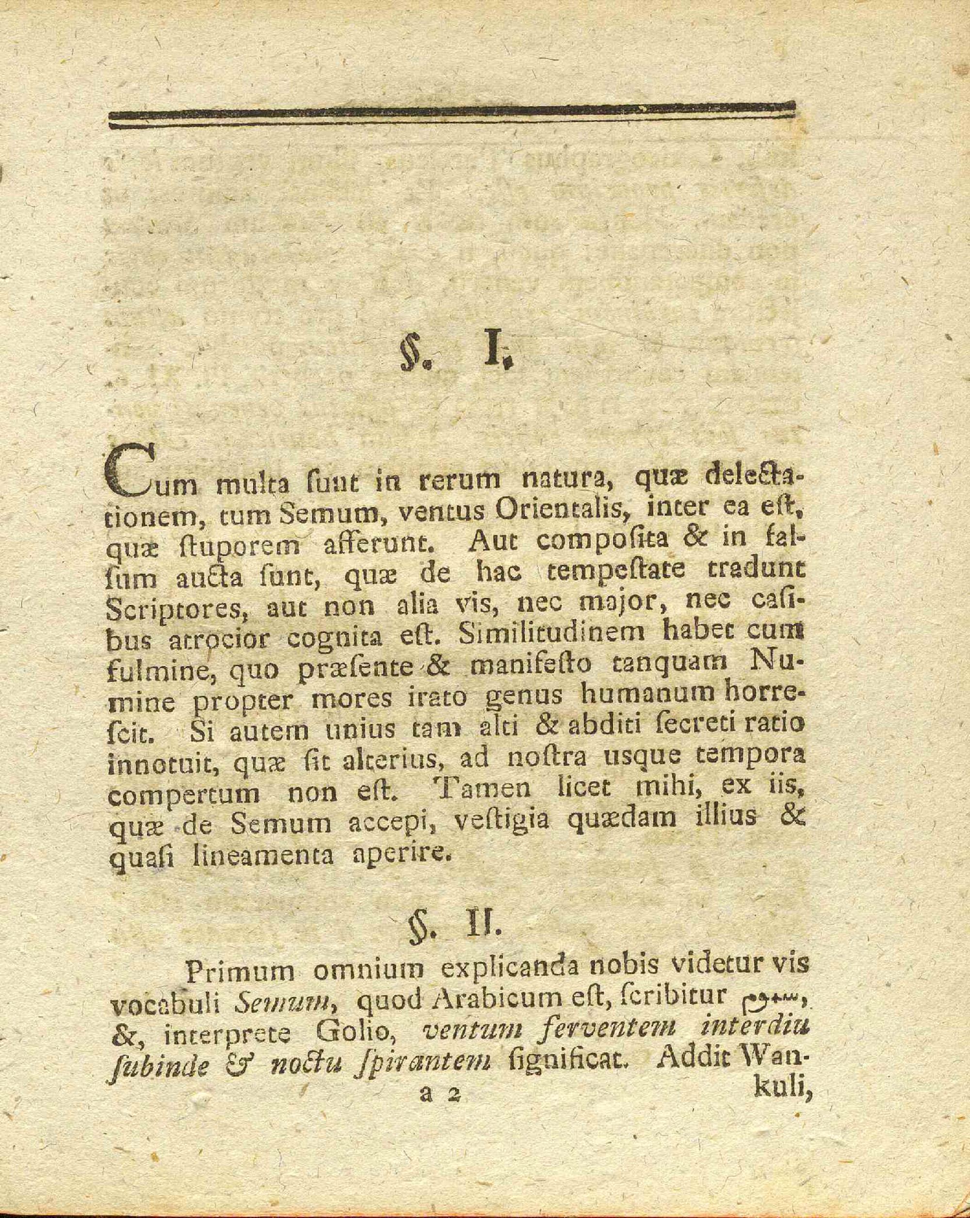 Dissertatio De Semum, Vento Pestifero / Quam, Nutu Incliti Ordinis Philos. Lundensis, Præside Matth. Norberg, Lingu. Orient. & Græc. Lingu. Prof. Reg. & Ord. Societ. Scient. Gœtt. & Musæi Paris. Corresp. & Societ. Educ. Membr. Ad Publicam Examen, pro Gradu defert Olaus Boström, Ostro-Gothus.