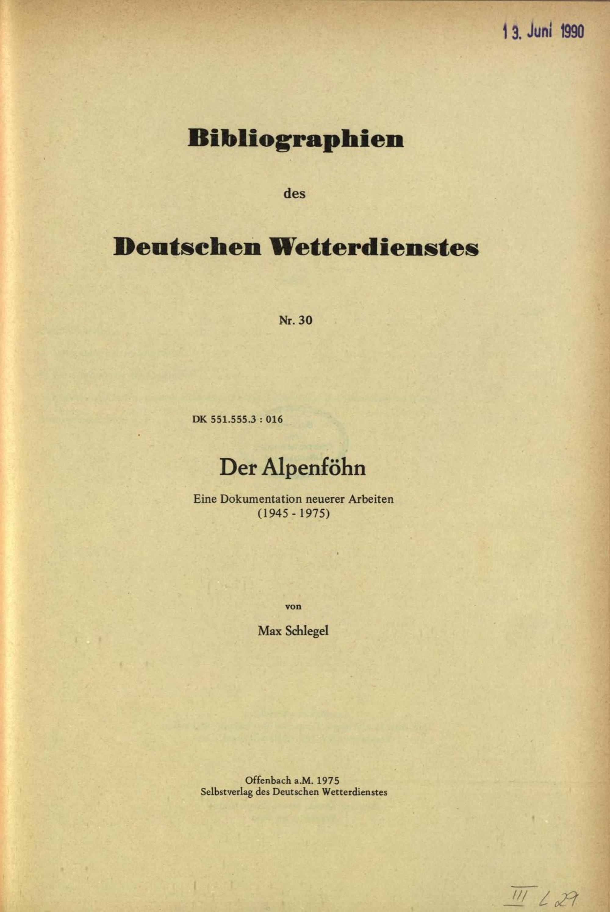 Der Alpenföhn : eine Dokumentation neuerer Arbeiten (1945 - 1975) / von Max Schlegel