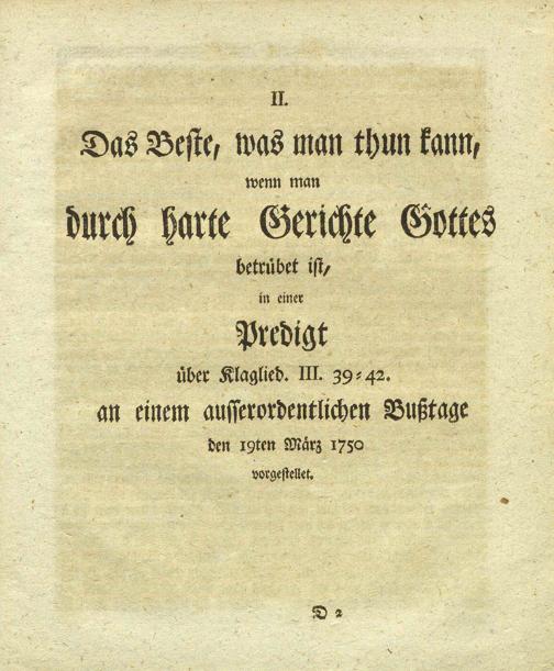 Zwo Predigten nach der am 10ten März 1750 durch einen Wetterstrahl verursachten Einäscherung der Hauptkirche zu St. Michaelis in Hamburg / gehalten von Joachim Johann Daniel Zimmermann, Diac. an St. Catharinen daselbst
