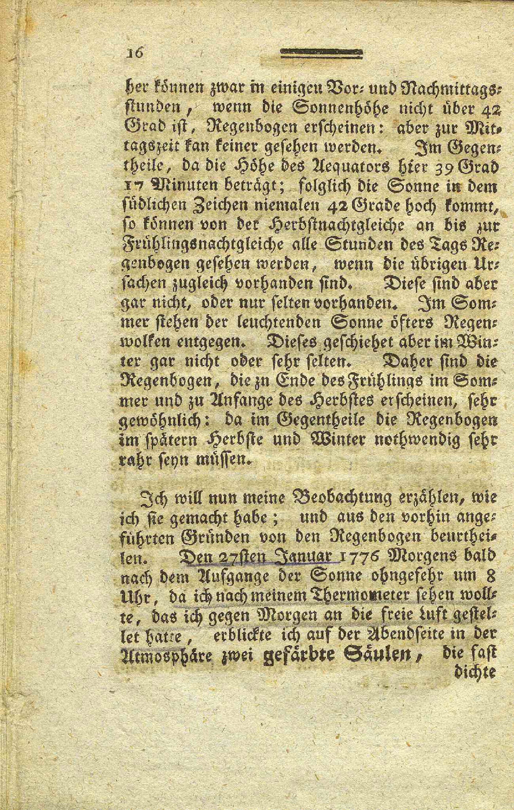 Beobachtung eines ausserordentlichen Regenbogens / von Joh. Gottl. Waldin, der Philosophie und Mathematik öffentlichem ordentlichen Lehrer auf der Fürstlich-Heßischen Universität Marburg