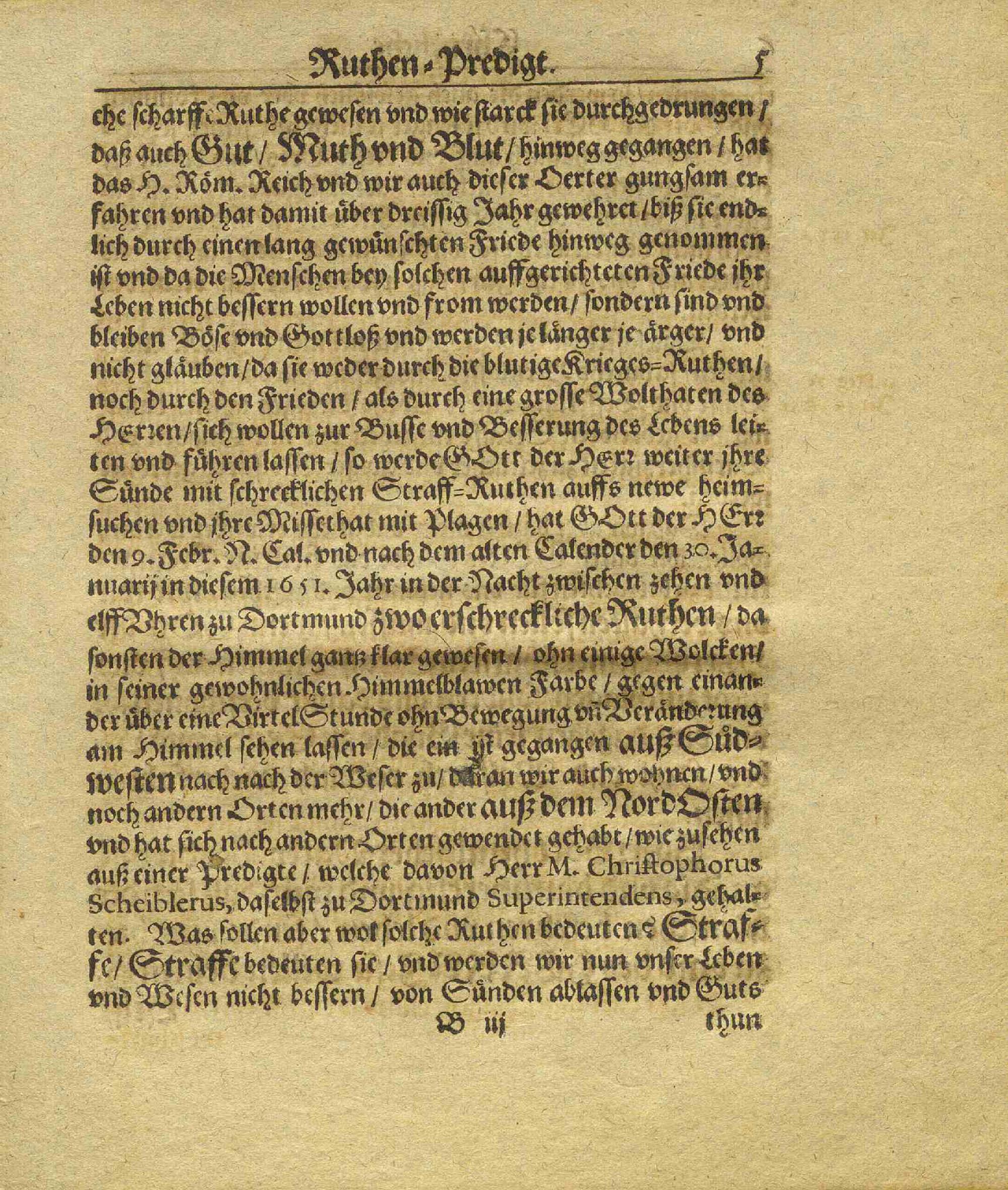 Christliche Ruhten-Predigte : Am Sontage Jubilate auß dem Evangelio Joh. 16. Von den zwo Erschrecklichen Ruhten/ So zu Dortmünd in diesem itzlauffenden Jahr gesehen worden/ deren eine ins NordOsten nach der Weser zu/ daran wir auch zu Minden wohnen/ vnd noch andern Orten mehr sich gewendet gehabt/ die ander aber ins Sudwesten/ Zu Erweckung wahrer Busse und Besserung des Lebens/ / Gehalten vnd in Druck heraußgegeben Von Hermanno Elerto, SS. Theol. Licentiato vnd zu Minden Pastore Primario. Matth. 24.v.15. Wer das lieset/ der mercke darauff