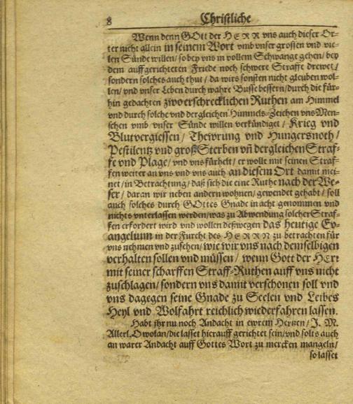 Christliche Ruhten-Predigte : Am Sontage Jubilate auß dem Evangelio Joh. 16. Von den zwo Erschrecklichen Ruhten/ So zu Dortmünd in diesem itzlauffenden Jahr gesehen worden/ deren eine ins NordOsten nach der Weser zu/ daran wir auch zu Minden wohnen/ vnd noch andern Orten mehr sich gewendet gehabt/ die ander aber ins Sudwesten/ Zu Erweckung wahrer Busse und Besserung des Lebens/ / Gehalten vnd in Druck heraußgegeben Von Hermanno Elerto, SS. Theol. Licentiato vnd zu Minden Pastore Primario. Matth. 24.v.15. Wer das lieset/ der mercke darauff