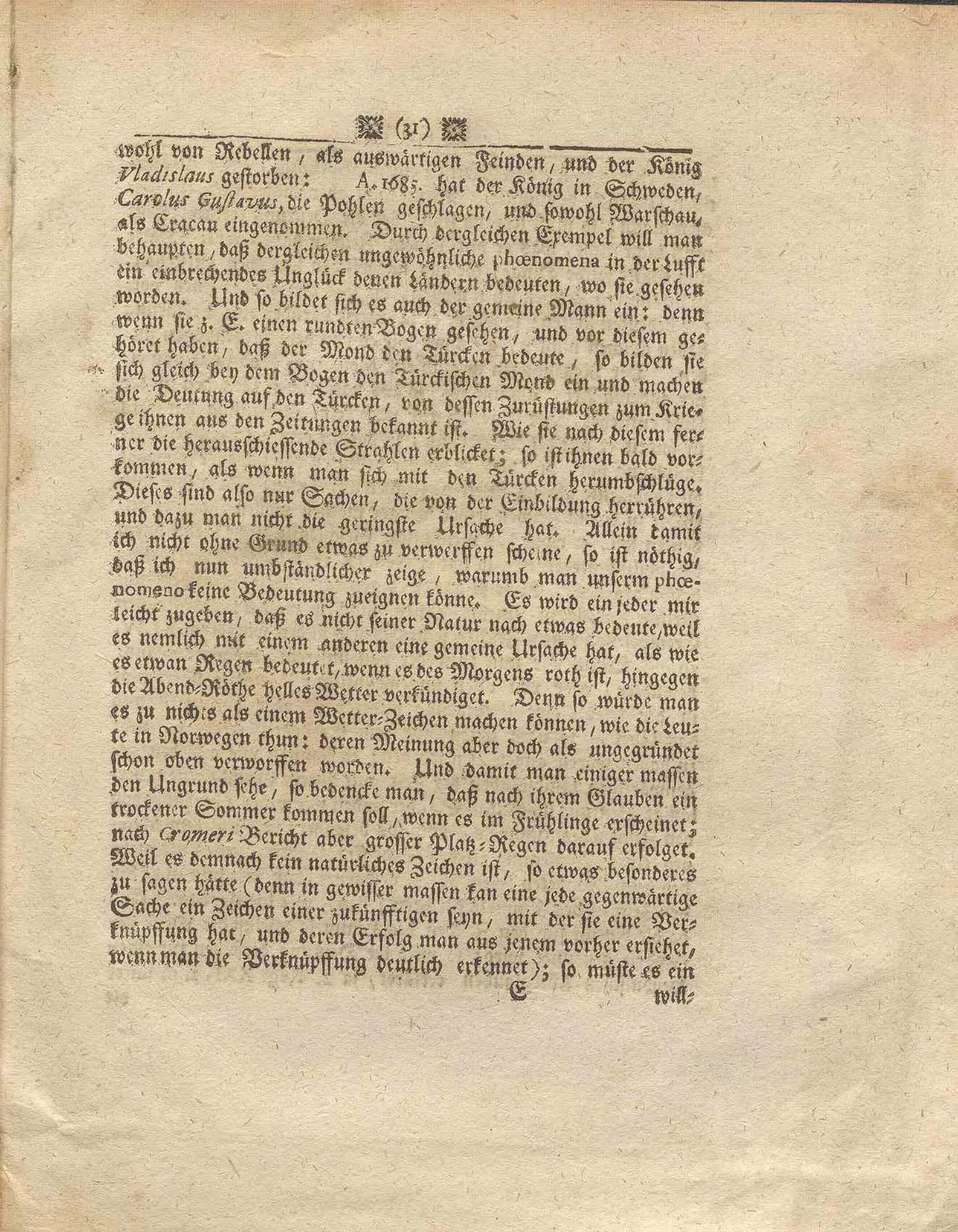 Christian Wolffes/ Königl. Preuß. Hoffraths/ und Matth. & Phys. P.P.O. der Königl. Groß-Britannischen/ wie auch der Königl. Preuß. Societät der Wissenschafften Mitglieds/ Gedancken über das ungewöhnliche Phœnomenon, Welches den 17. Martii 1716. des Abends nach 7. Uhren zu Halle und an vielen andern Orten in und ausserhalb Deutschland gesehen worden : Wie er sie den 24. Martii in einer Lectione Publica Auf der Universität zu Halle eröffnet
