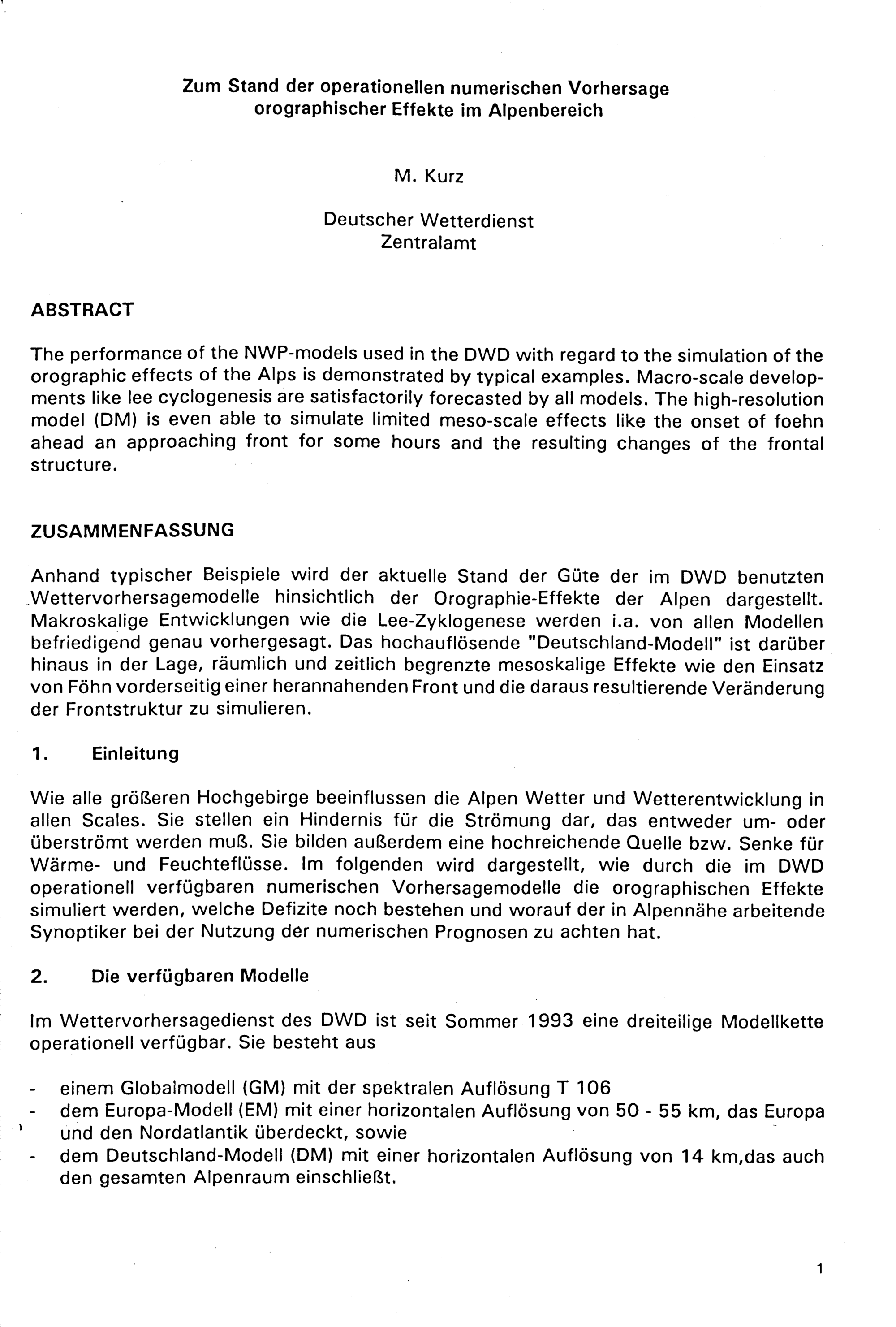 23. Internationale Tagung für Alpine Meteorologie : vom 5. bis 9. September 1994 in Lindau / [Hrsg.: Deutscher Wetterdienst, Zentralamt]