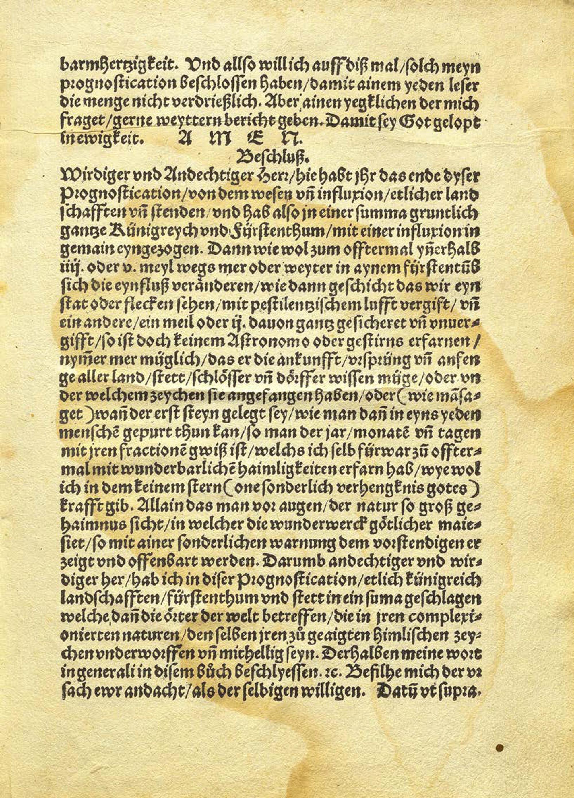 Bedeutnus un Offenbarug warer himelischer Jnfluxion / des hoch erfarnenn Magistri Johannis Charionis Buetikaymensis. Churfürstlicher Gnaden vonn Brandenburg, ic Mathematicj, vonn jaren zu jaren werende biß man schreybt M.D. und xl. Jar. Alle Landtschafft und Stennde unnd eynflüßtlerlich betreffenndt