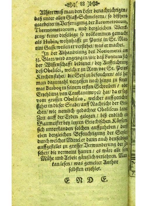 1 (1697) Worinnen vermittels drey sonderbahrer Instrumenten/ Durch wunderbahre Würckung Der Natur und Kunst/ I. Die Schwäre und Leichte/ II. Die Truckene und Feuchte/ III. Das Ab- und Zunehmen der Hitz und Kälte Der Lufft zu erkennen seynd : Allen Kunst-begierigen und Herrn Medicis zur Lieb und Nutzbarkeit auffgesetzt/ Und mit hierzu dienlichen Kupffer-Figuren geziehret