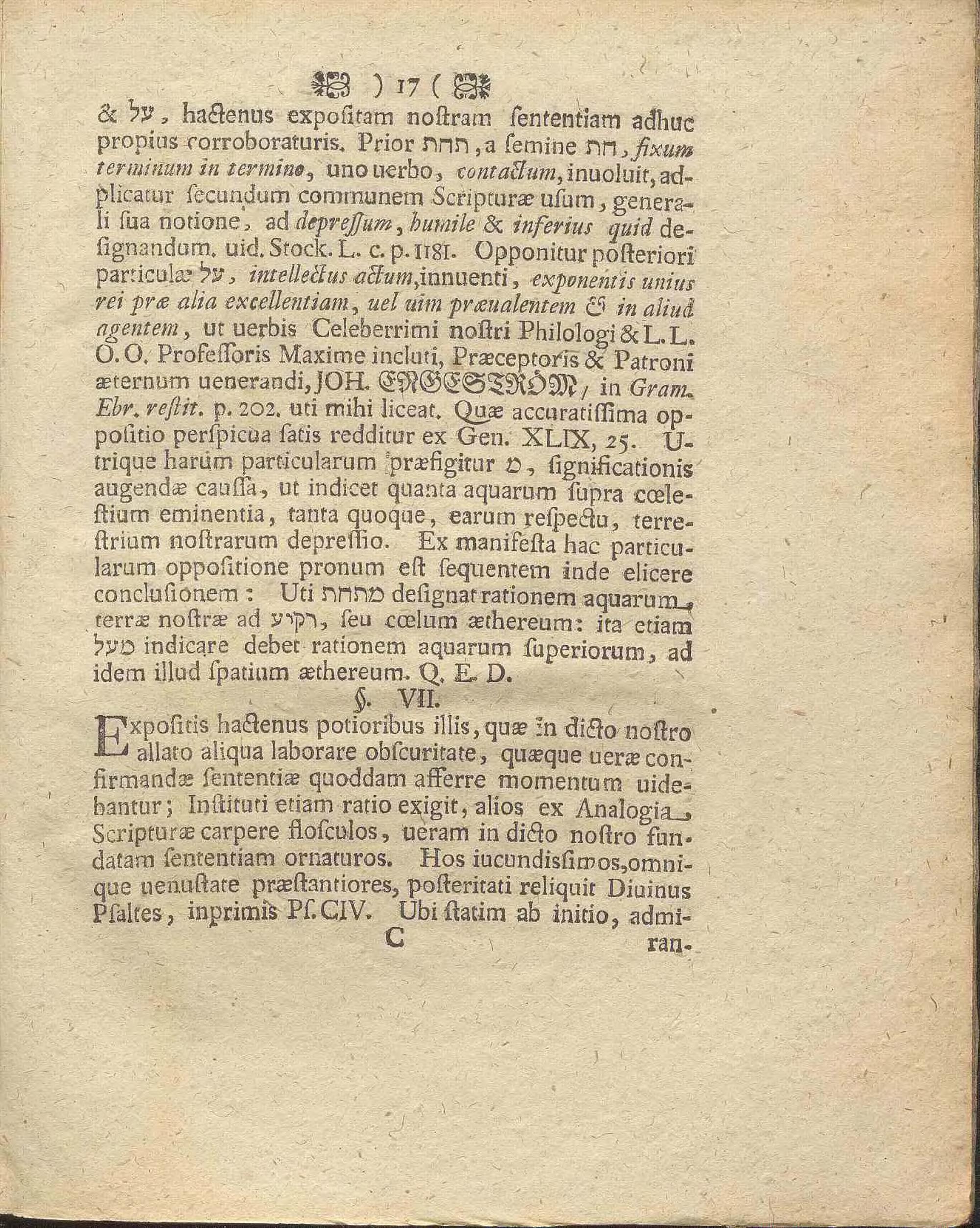 Dissertatio Philologica De Aquis Supracoelestibus / Quam,|Diuina adspirante Gratia, Cum consensu Amplissimæ Facult. Philos. in Academia Gothor. Carolina, Publico Examini submittunt Præses Mag. Johan Rogberg Et Respondens Johannes Lundahl, Smolandus