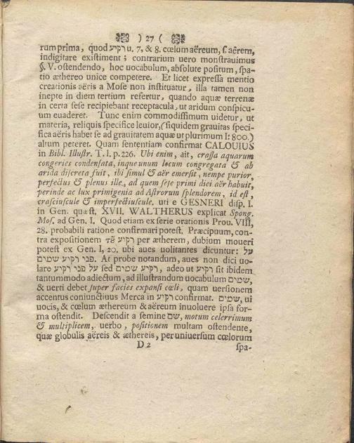 Dissertatio Philologica De Aquis Supracoelestibus / Quam,|Diuina adspirante Gratia, Cum consensu Amplissimæ Facult. Philos. in Academia Gothor. Carolina, Publico Examini submittunt Præses Mag. Johan Rogberg Et Respondens Johannes Lundahl, Smolandus