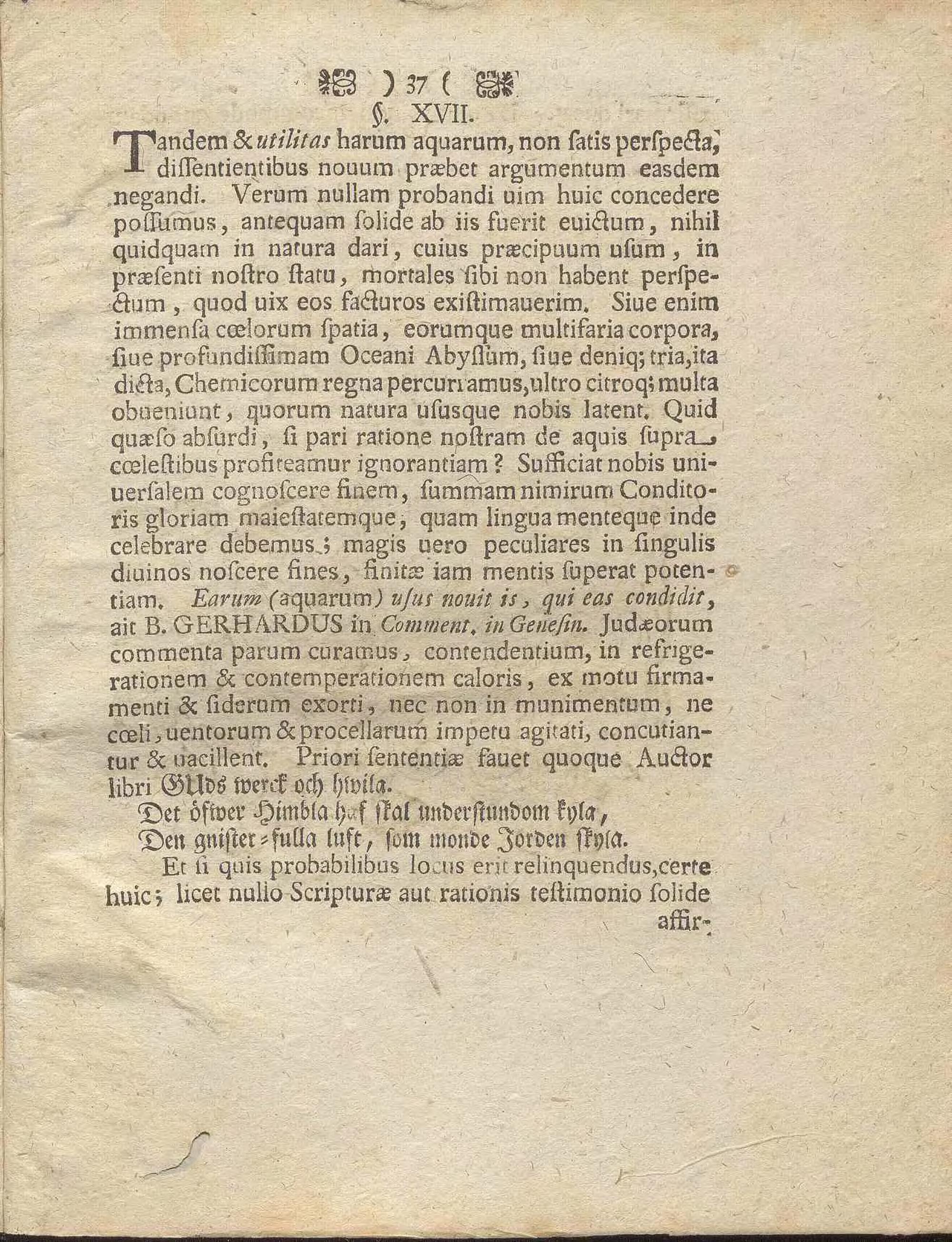 Dissertatio Philologica De Aquis Supracoelestibus / Quam,|Diuina adspirante Gratia, Cum consensu Amplissimæ Facult. Philos. in Academia Gothor. Carolina, Publico Examini submittunt Præses Mag. Johan Rogberg Et Respondens Johannes Lundahl, Smolandus
