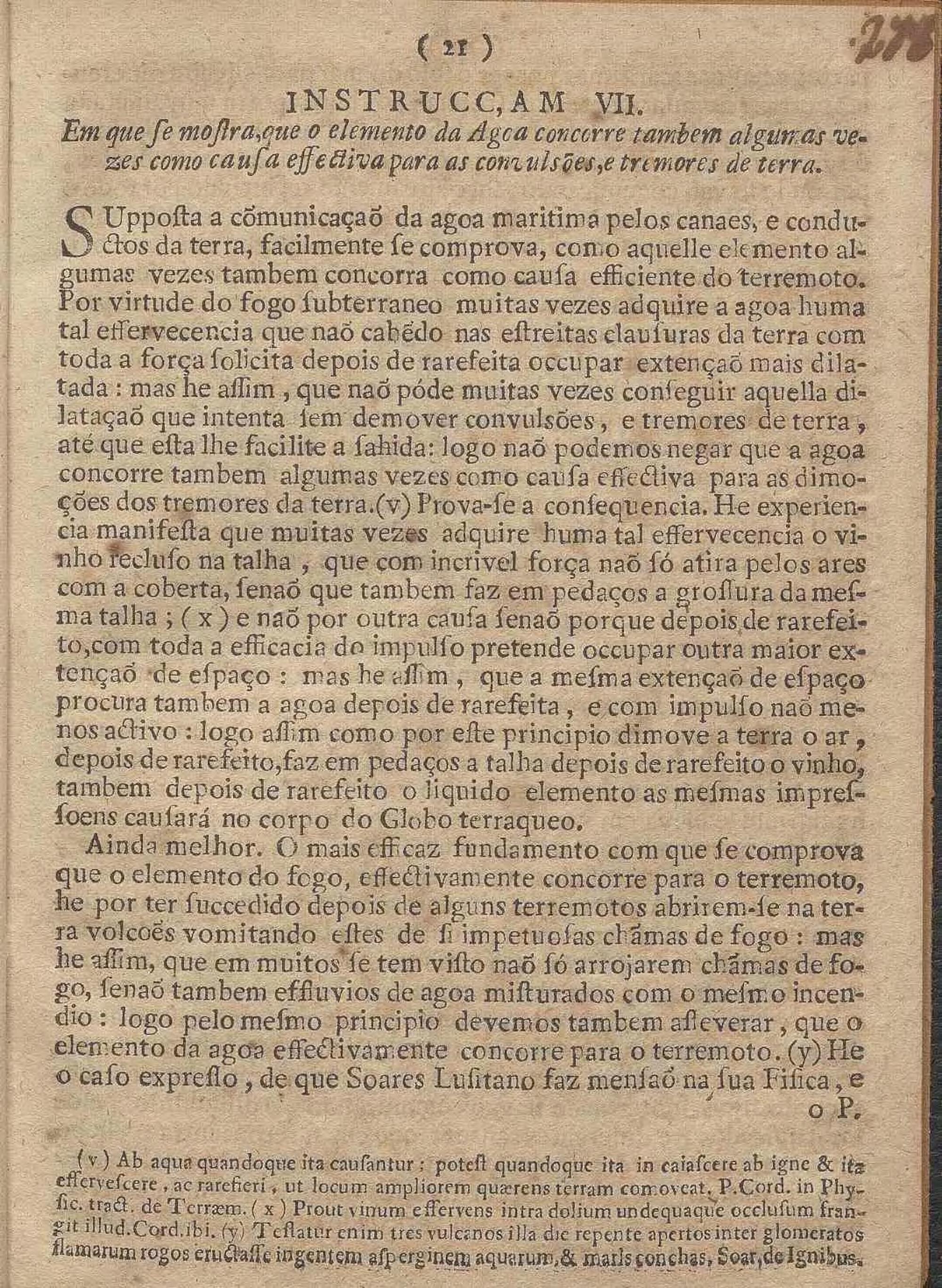 Nova Instrucc, Am Filosofica, Estabelecida Em Varios Experimentos, systemas, e observaçoens pertencentes á Mathematica, principalmente A Artilheria, astrologia, Metheoros, E Musica, em que evidentemente se demostra, que os tres elementos do Fogo, do Ar, e da Agca saõ as causas principaes, que dimovem as convulsoens, e tremores da terra; e tratando dos dous terremotos, que se experimentaraõ em Lisboa, do primeiro do mez de Novembro, do segundo de Março proximo : Expende As Particulares Razoens Da Mayor Intenc, Am e extençaõ de espaço, que abrangeo o primeiro, da circunstancia do ruido, e estrondo, de succeder de manhaã pela conjuçaõ do meyo dia, e no mez de Março, infringindo por ultimo a fé, e o credito, que o vulgo costuma tributar aos Prognosticos, que fazem os Reportorios de quaesquer Terrmotos futuros / Por Fr. Francisco De Vasconcellos E Sande Corte Real, Freire Professo na Ordem Militar de S. Bento de Aviz, Mestre em Artes, e Doutor na Sagrada Theologia
