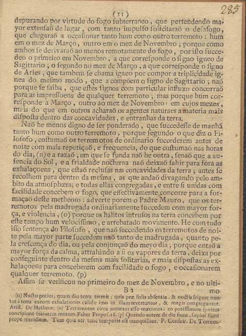 Nova Instrucc, Am Filosofica, Estabelecida Em Varios Experimentos, systemas, e observaçoens pertencentes á Mathematica, principalmente A Artilheria, astrologia, Metheoros, E Musica, em que evidentemente se demostra, que os tres elementos do Fogo, do Ar, e da Agca saõ as causas principaes, que dimovem as convulsoens, e tremores da terra; e tratando dos dous terremotos, que se experimentaraõ em Lisboa, do primeiro do mez de Novembro, do segundo de Março proximo : Expende As Particulares Razoens Da Mayor Intenc, Am e extençaõ de espaço, que abrangeo o primeiro, da circunstancia do ruido, e estrondo, de succeder de manhaã pela conjuçaõ do meyo dia, e no mez de Março, infringindo por ultimo a fé, e o credito, que o vulgo costuma tributar aos Prognosticos, que fazem os Reportorios de quaesquer Terrmotos futuros / Por Fr. Francisco De Vasconcellos E Sande Corte Real, Freire Professo na Ordem Militar de S. Bento de Aviz, Mestre em Artes, e Doutor na Sagrada Theologia