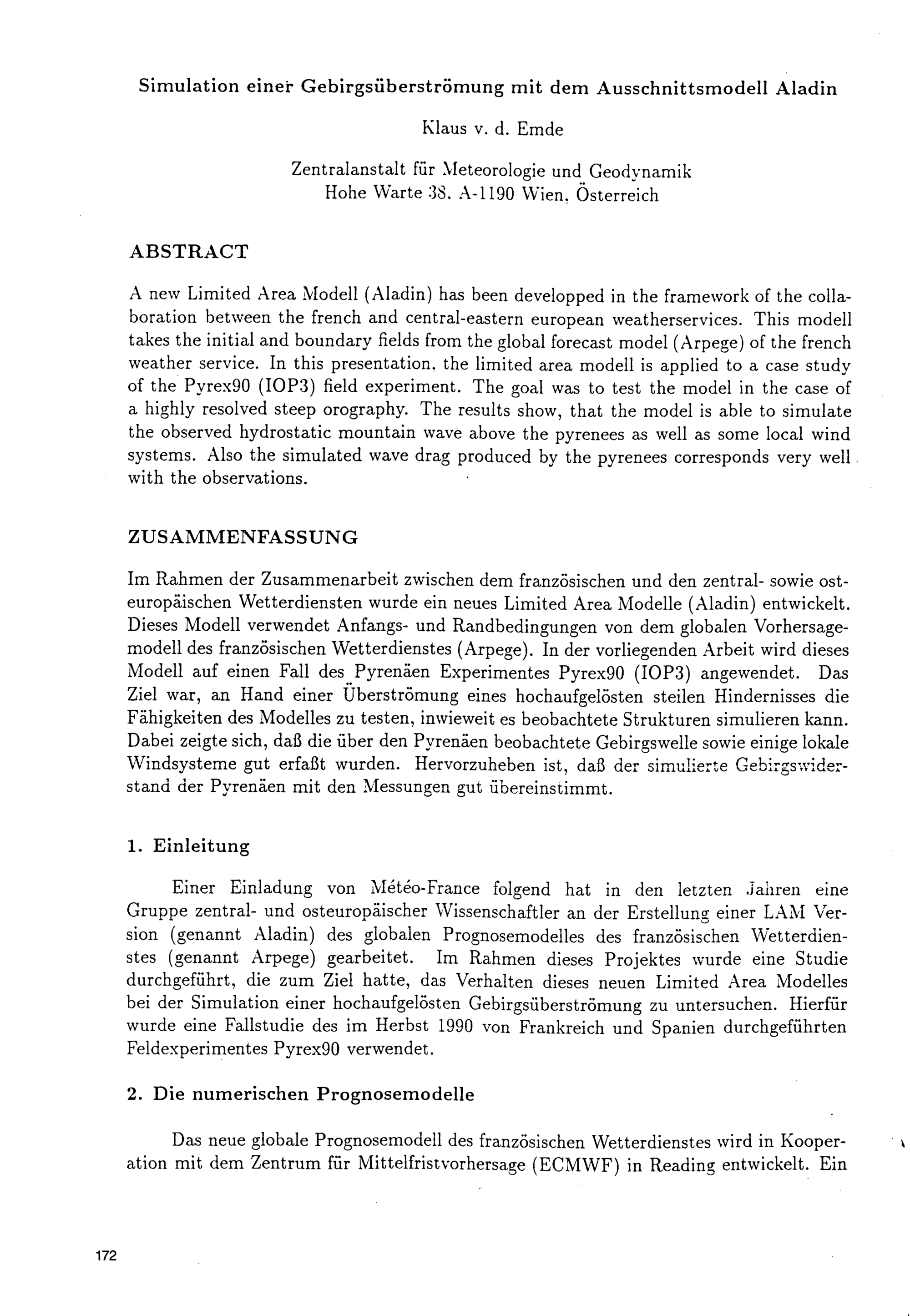 23. Internationale Tagung für Alpine Meteorologie : vom 5. bis 9. September 1994 in Lindau / [Hrsg.: Deutscher Wetterdienst, Zentralamt]