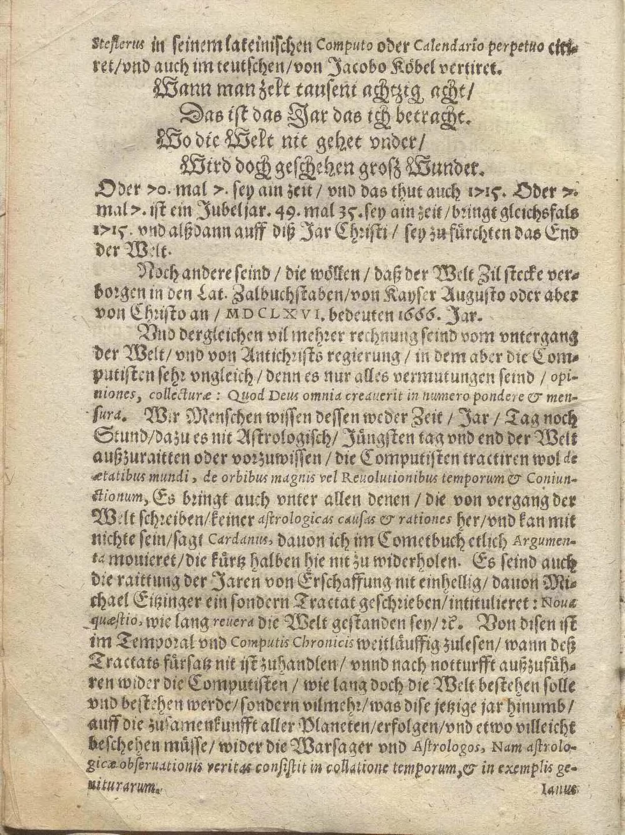 Practica, Wider etliche weissagungen vnd Prognostica, sonderlich des Misocaci, vom Antichrist/ letzter Zeit/ vnd end der Welt/ von vndergang hohes Geschlechts/ von änderung der Reich vnd Religion/ ein vrtheil vnd allgemeiner bericht/ auß den zufällen des 6.7. vnd 88. Wunderschaltjars / Gestellet/ durch Johann Rasch, Domini potentes, populi regentes