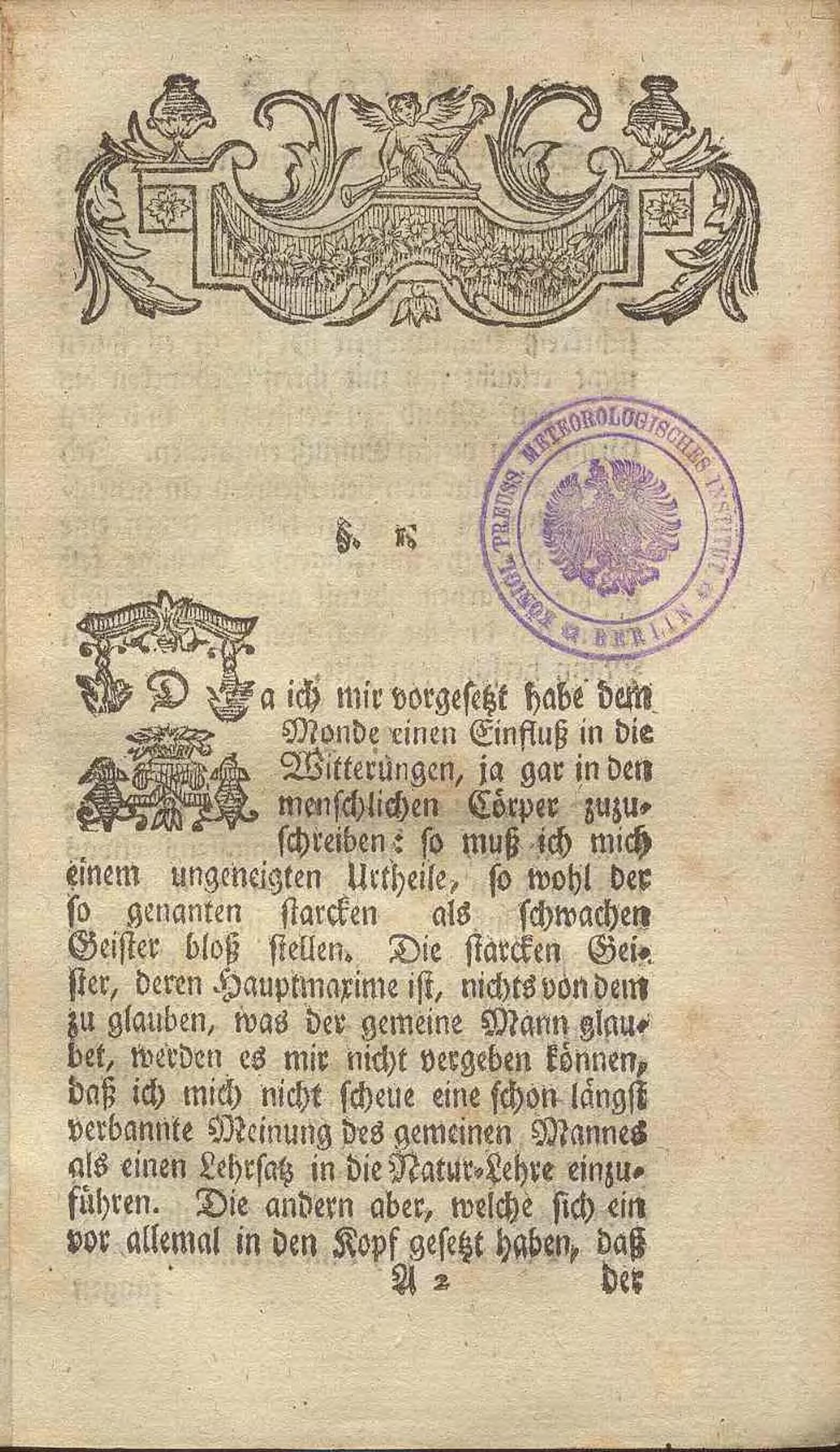 Christian Gottlieb Kratzensteins, der Weltweißheit und Arneywissenschaft Doctors, Abhandlung von dem Einfluß des Mondes in die Witterungen und in den menschlichen Cörper : wobey er zugleich zu seinen künftigen Vorlesungen einladet
