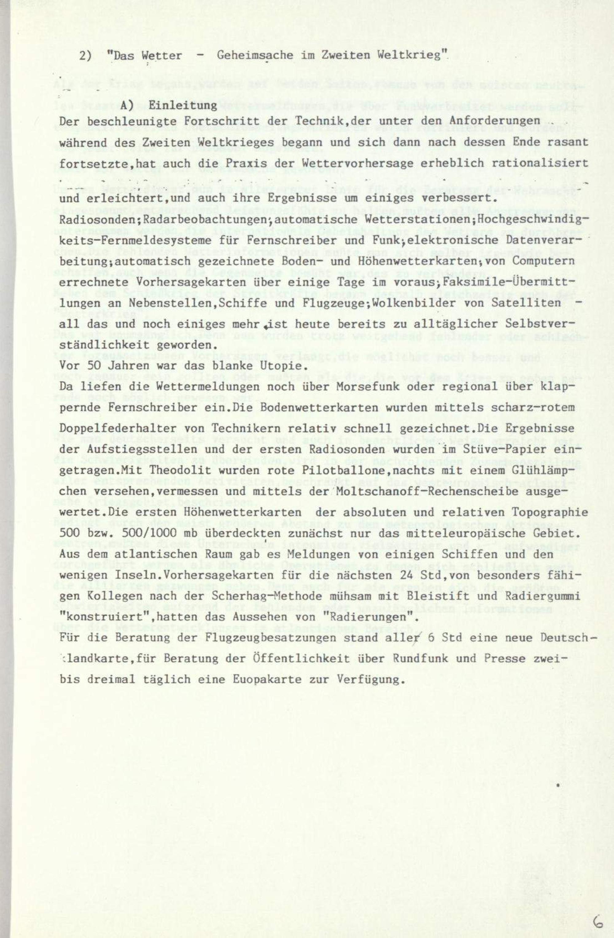 1 (1993) Das Wetter - Geheimsache im Zweiten Weltkrieg : ein Beitrag zur Geschichte des Deutschen Wetterdienstes 1939-1945 : Manuskript, 6-teilig / Martin Teich
