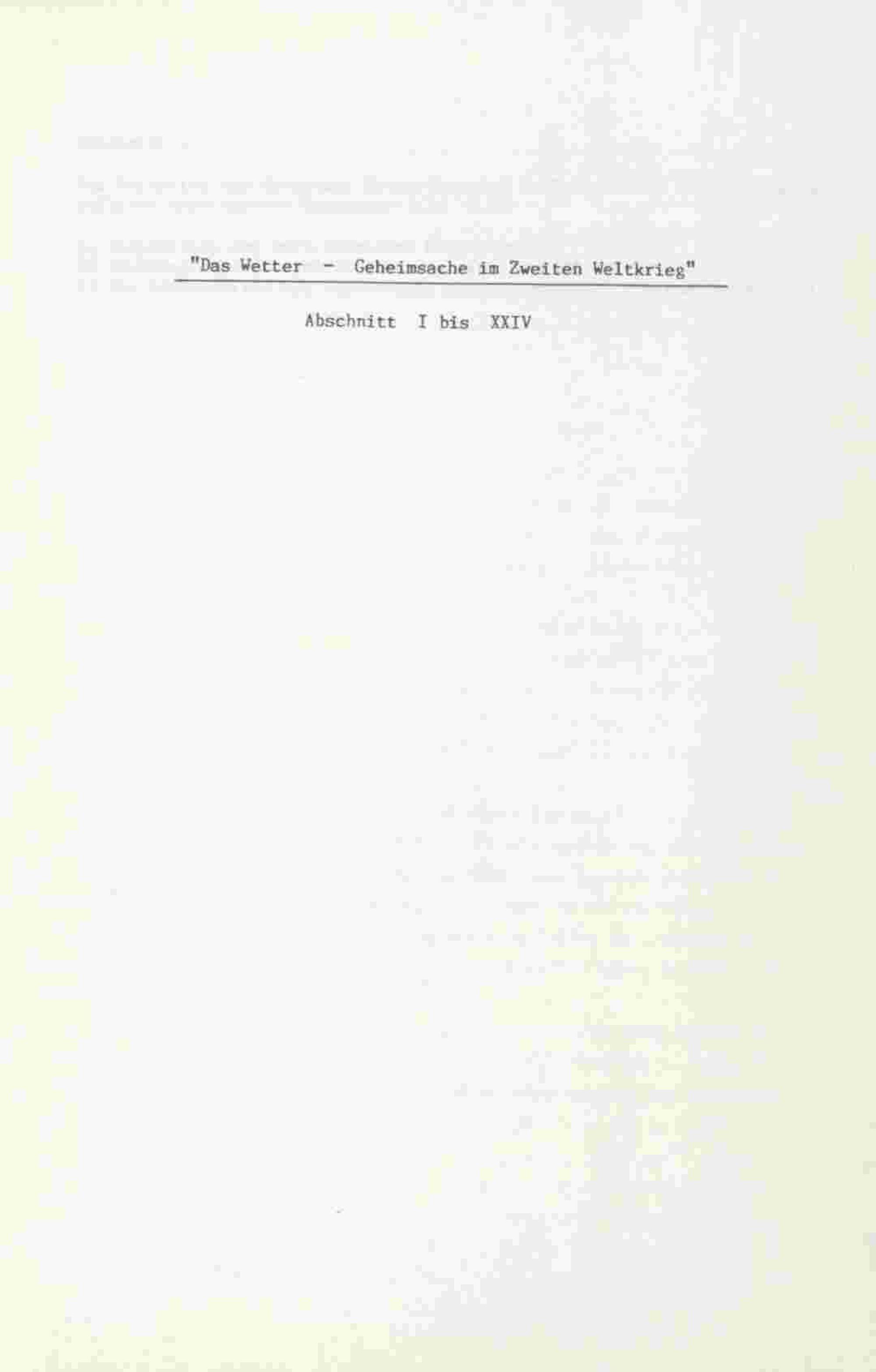 1 (1993) Das Wetter - Geheimsache im Zweiten Weltkrieg : ein Beitrag zur Geschichte des Deutschen Wetterdienstes 1939-1945 : Manuskript, 6-teilig / Martin Teich