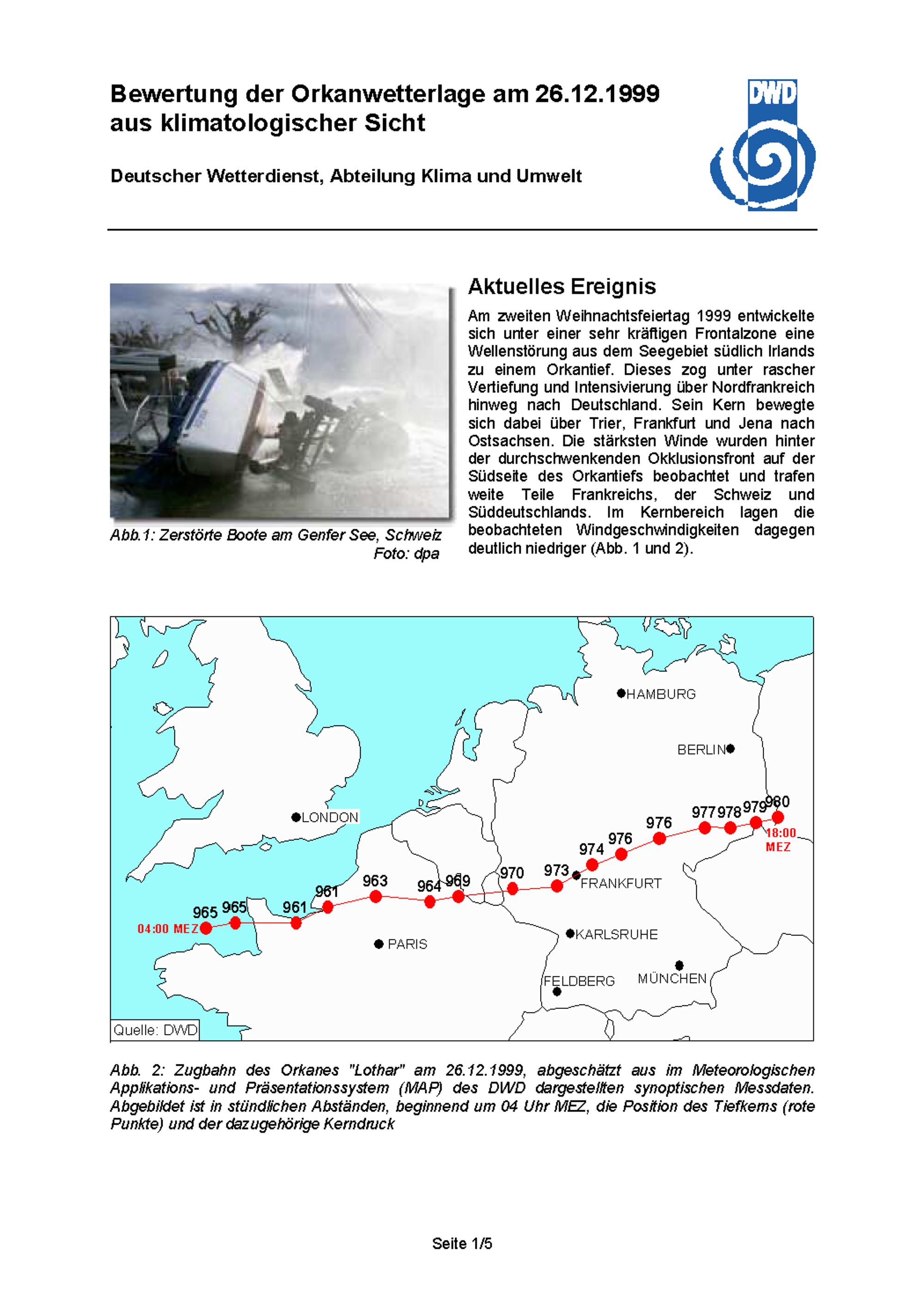 Bewertung der Orkanwetterlage am 26.12.1999 aus klimatologischer Sicht / Deutscher Wetterdienst