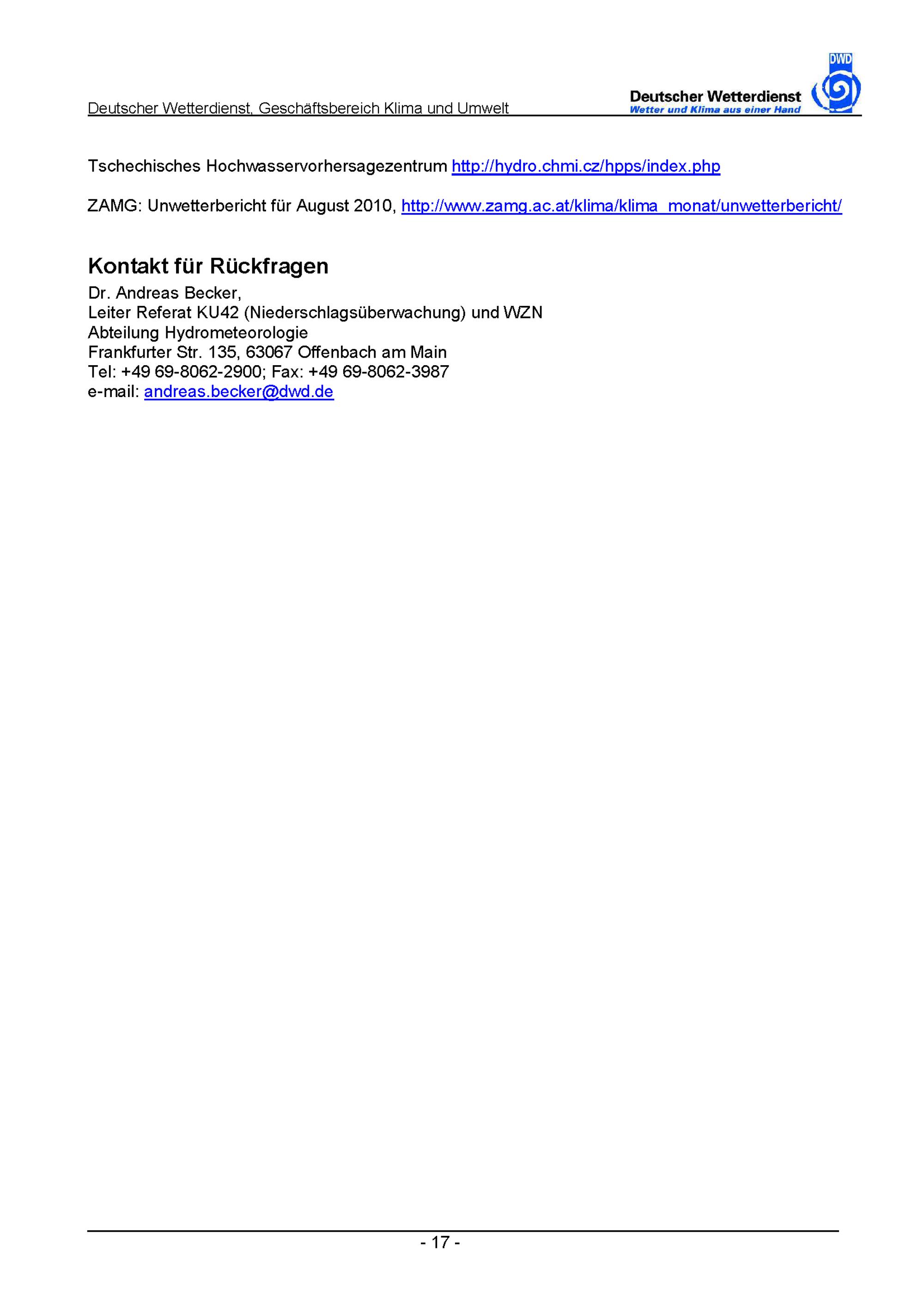 Zur Rolle des Starkniederschlages am 7. - 9. August 2010 im Dreiländereck Polen, Tschechien, Deutschland bei der Entstehung der Hochwasser von Neiße, Spree und Elbe / Peter Bissolli ...