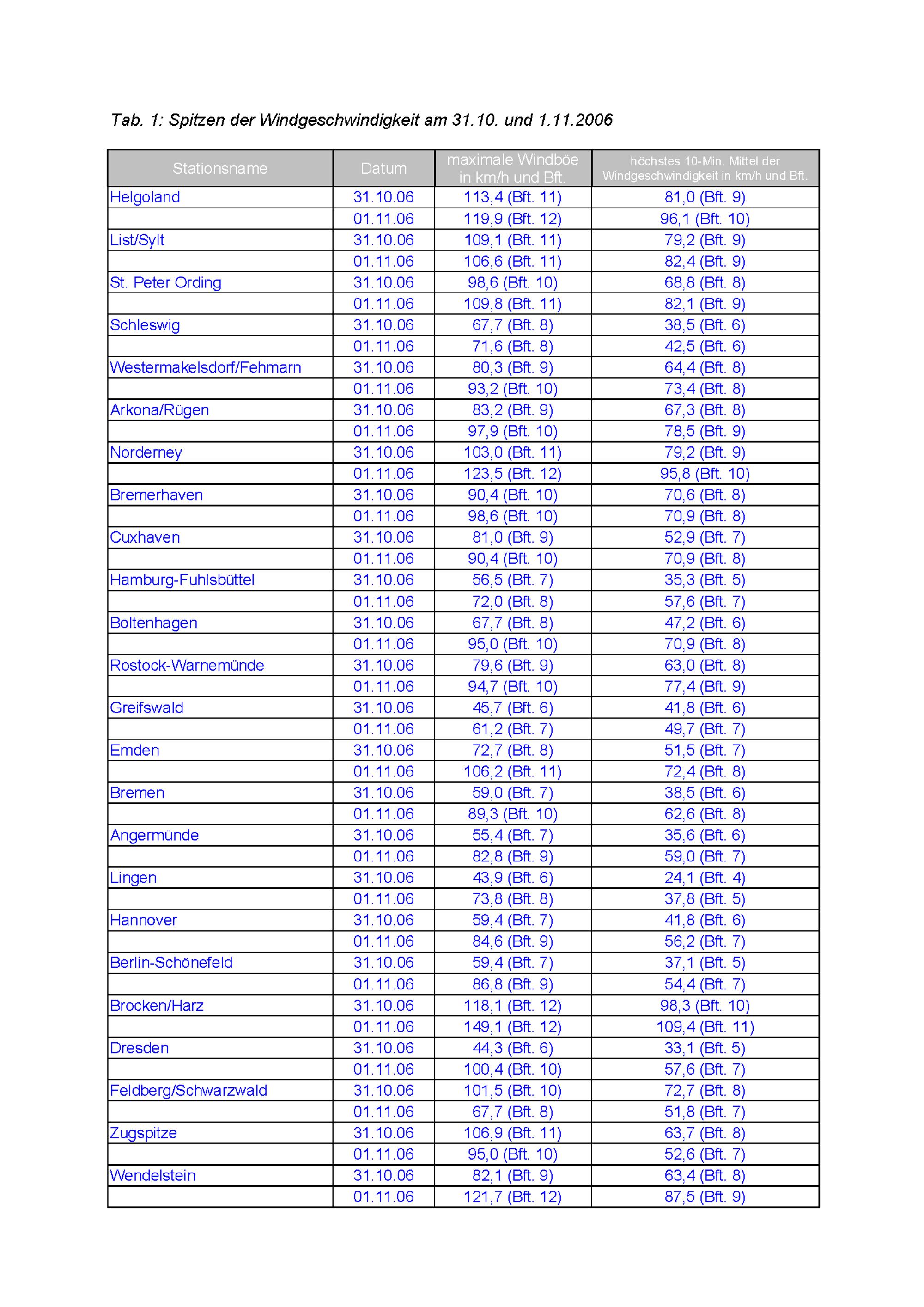 Orkan Britta am 31.10. und 01.11.2006 und seine Auswirkungen