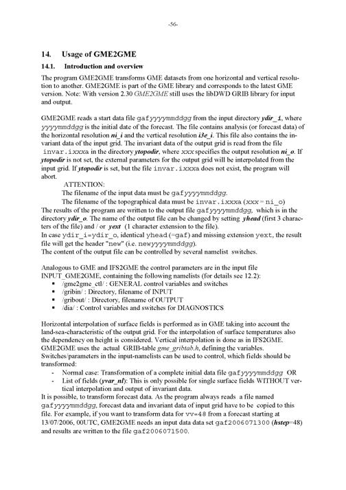 13. NAMELIST Input of IFS2GME