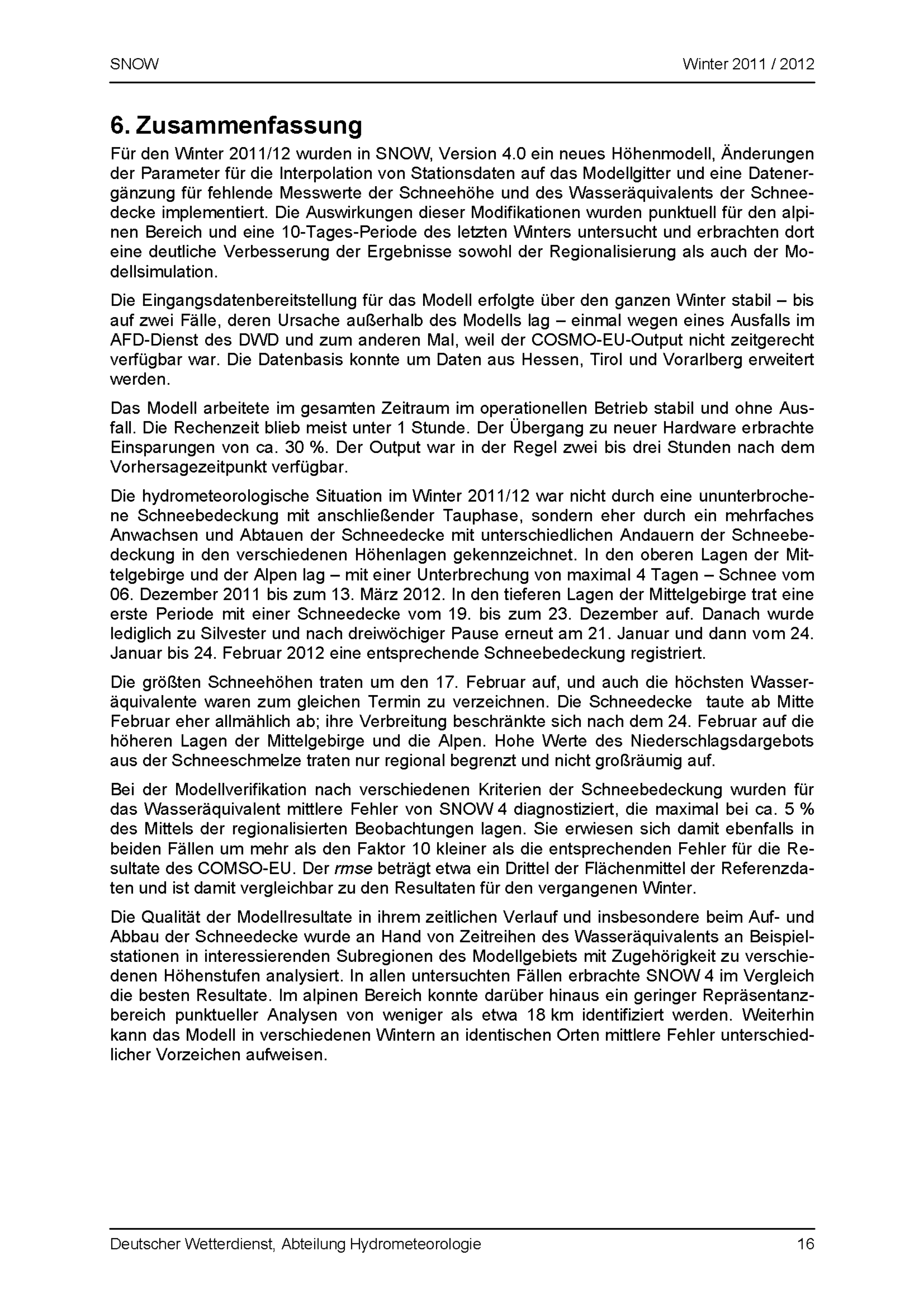 SNOW, Vers. 4.0, Neuerungen und Verifikation für den Winter 2011/2012