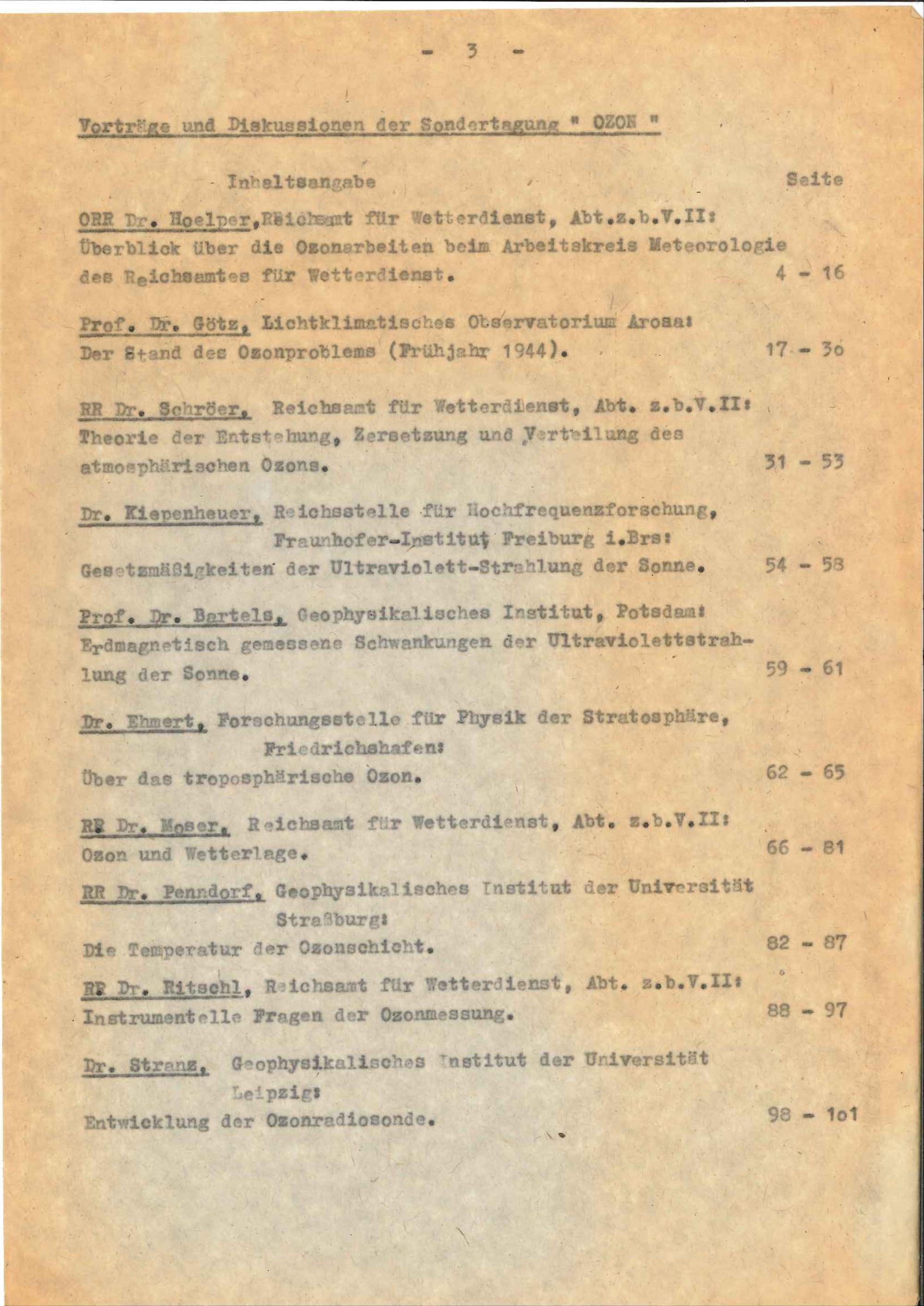 Vorträge und Diskussionen der Sondertagung "Ozon" : 17. und 18. April 1944 in Tharandt / Reichsamt für Wetterdienst, Arbeitskreis Meteorologie