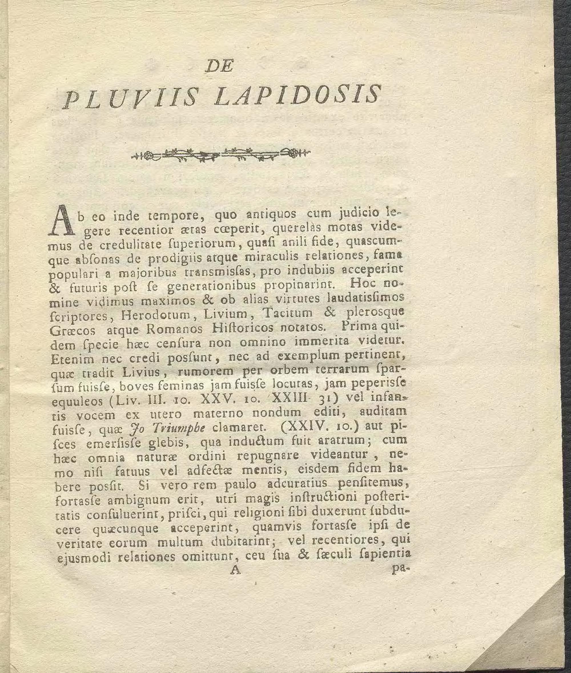 Dissertatio Academica De Pluviis Lapidosis / Quam Venia Amp. Fac. Phil. Ups. Præside Mag. Jac. F. Neikter, Eloqv. Et. Polit. Profess. Reg. Et. Skytt. Reg. Acad. Litt. Hum. Hist. Et. Ant. Ut Et Reg. Soc. Ups. Membro, Pro Gradu Philosophico Exhibit Laur. Wilh. Zethelius Stockholmiensis