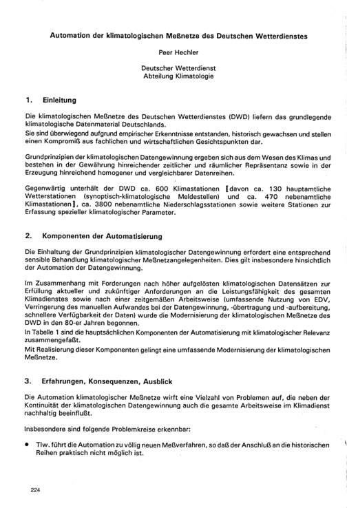 Automation der klimatologischen Meßnetze des Deutschen Wetterdienstes