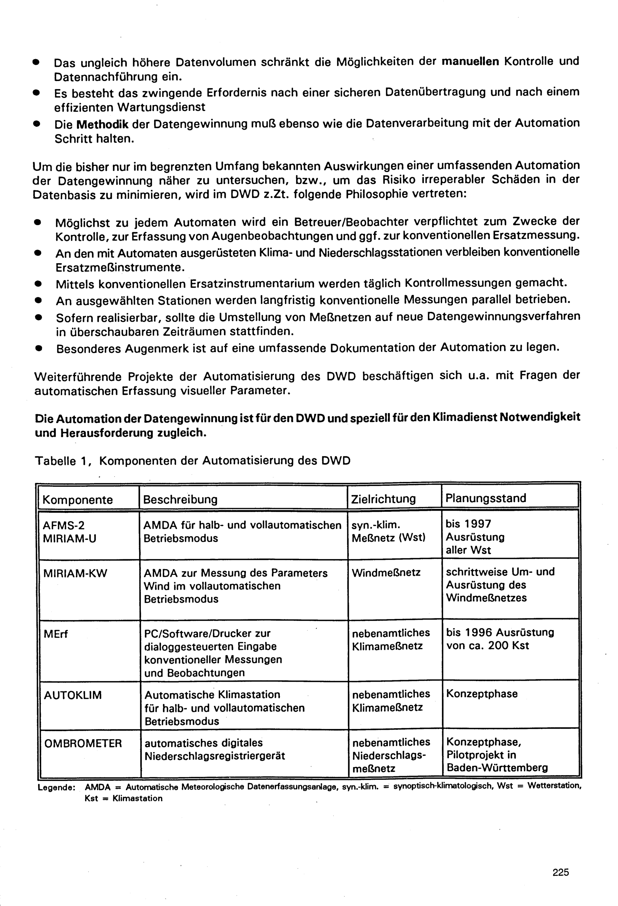 Automation der klimatologischen Meßnetze des Deutschen Wetterdienstes
