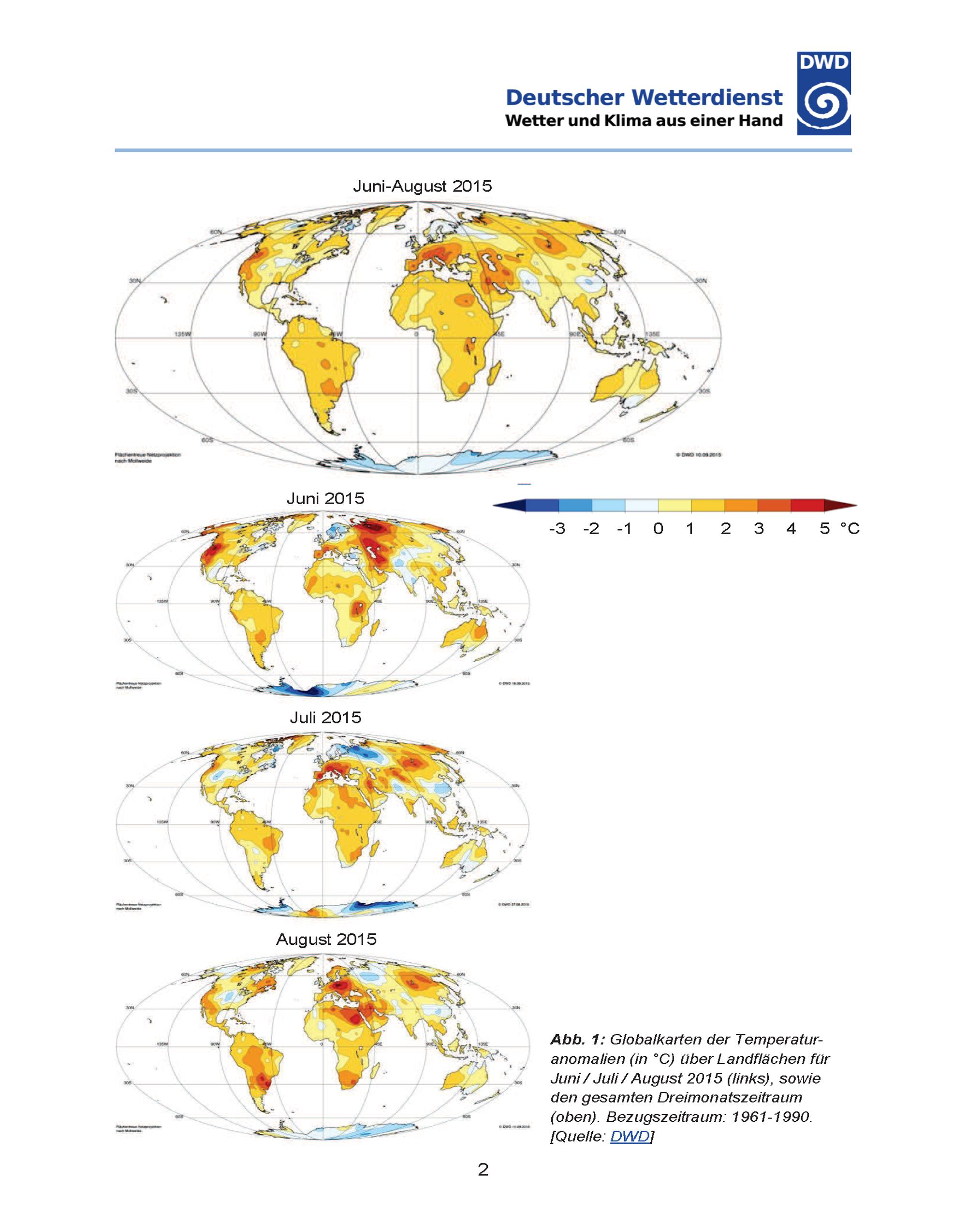Temperaturen global - Juni/Juli/August 2015
