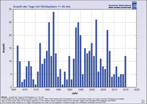 Anzahl der Tage mit Windspitzen >=20 m/s