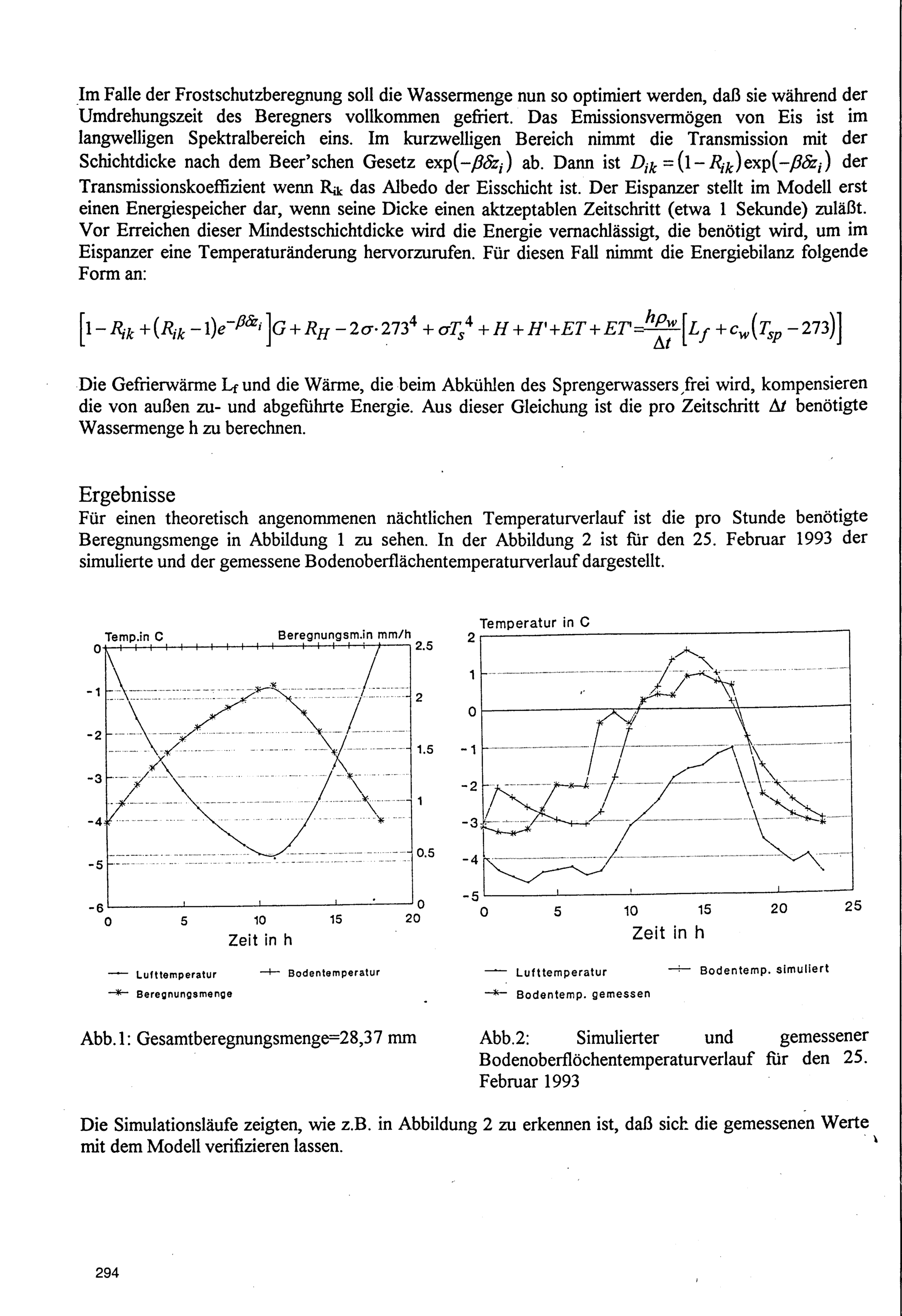 Wirkung einer Folie auf den Wärmehaushalt eines Pflanzenbestandes mit und ohne gleichzeitiger Frostschutzberegnung