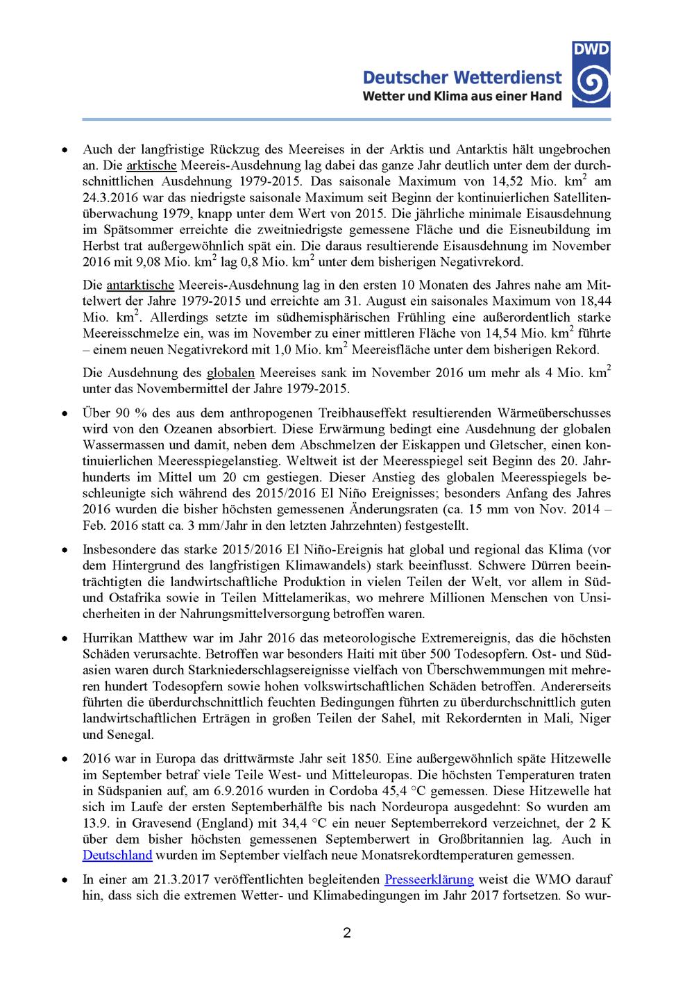 WMO-Klimabericht 2016: Vielfache Klimarekorde mit globalen Auswirkungen / Autoren: Dr. Florian Imbery und Dr. Frank Kaspar