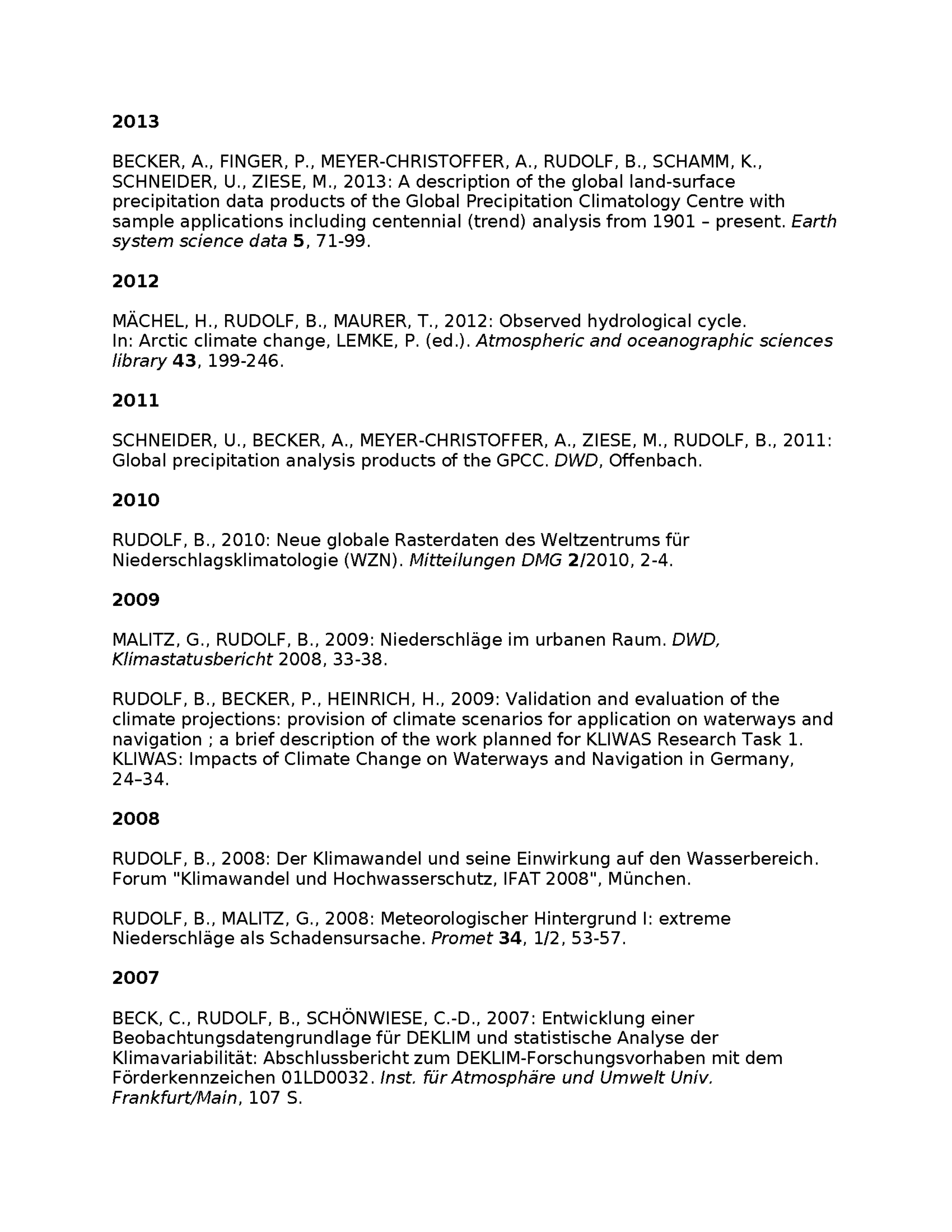 Bibliographie Dr. Bruno Rudolf / Zusammenstellung: Fachinformationsstelle und Deutsche Meteorologische Bibliothek