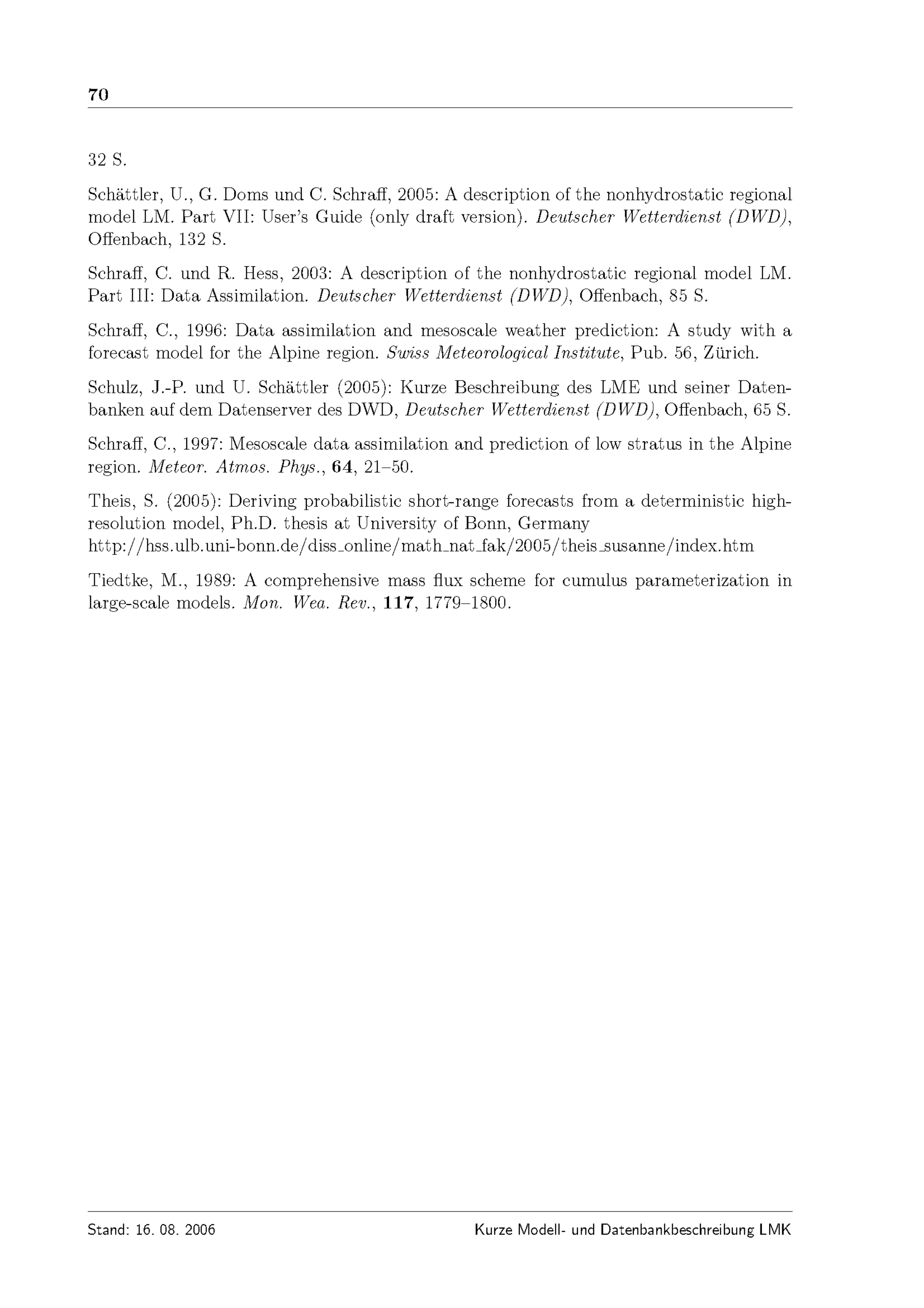 Kurze Beschreibung des Lokal-Modells Kürzestfrist LMK und seiner Datenbanken auf dem Datenserver des DWD / M. Baldauf