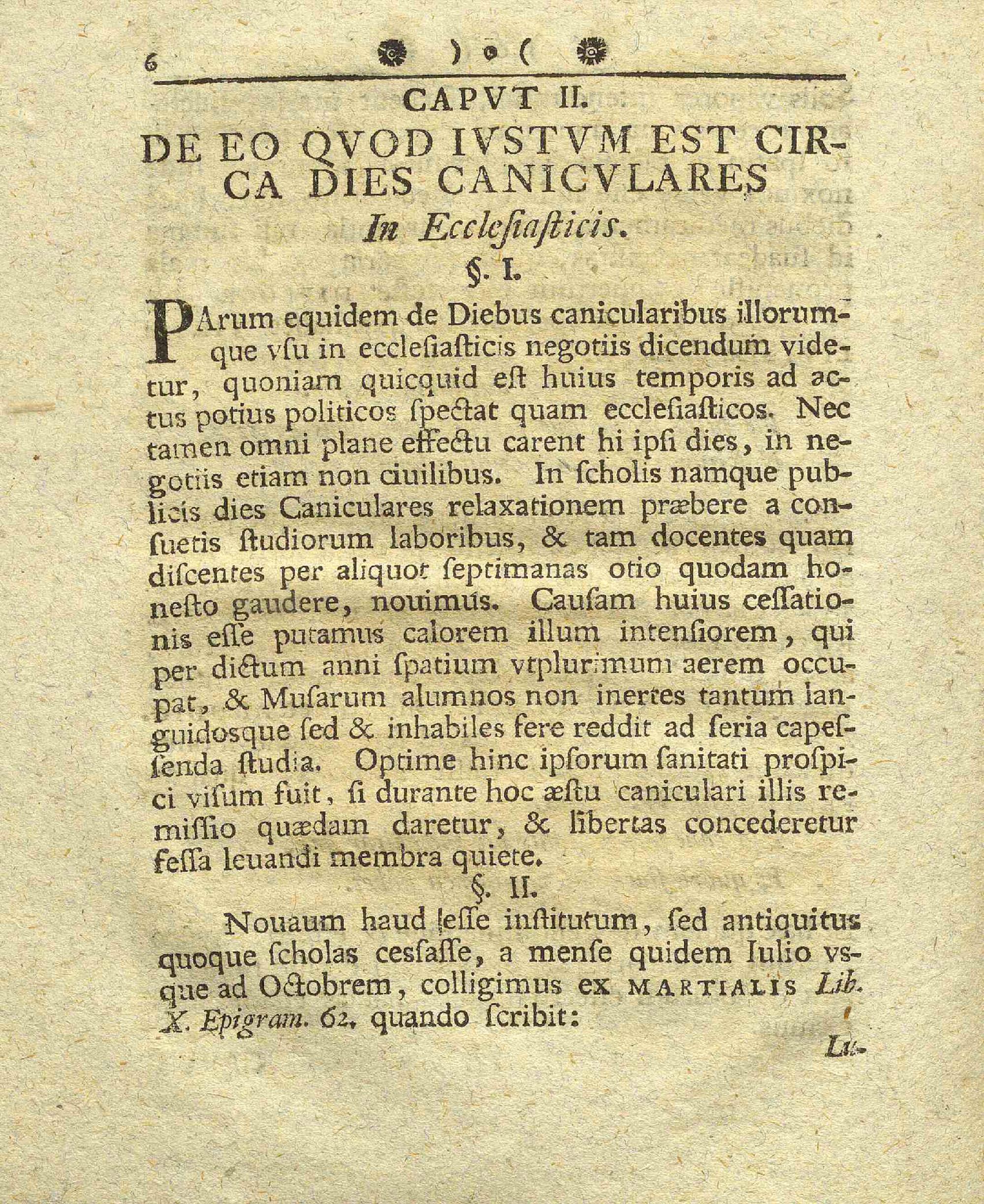 Commentatio Ivridica De Eo Qvod Ivstvm Est Circa Dies Canicvlares Oder: Von dem, was in Ansehn der Hunds-Tage so wohl in Geistlichen als Politischen Rechtens ist / Christiani Wildvogelii