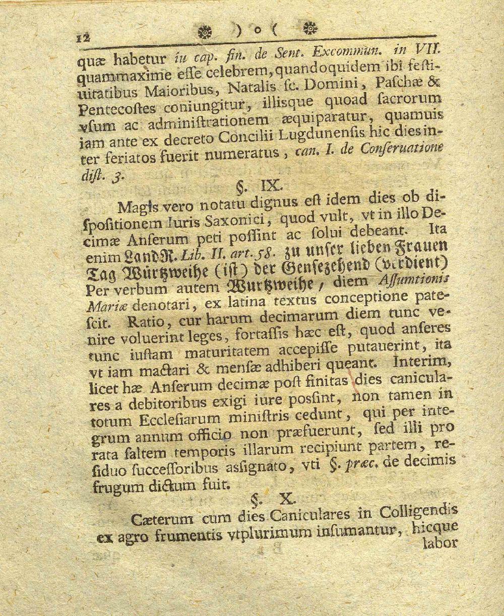 Commentatio Ivridica De Eo Qvod Ivstvm Est Circa Dies Canicvlares Oder: Von dem, was in Ansehn der Hunds-Tage so wohl in Geistlichen als Politischen Rechtens ist / Christiani Wildvogelii
