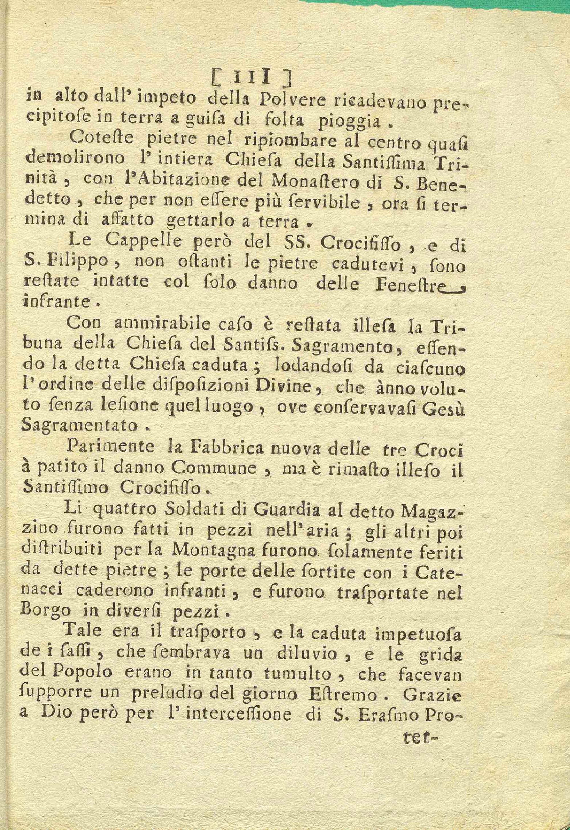 Distinta relazione del terribile e funesto temporale avvenuto nella citta di Gaeta il di 19. Settembre 1760