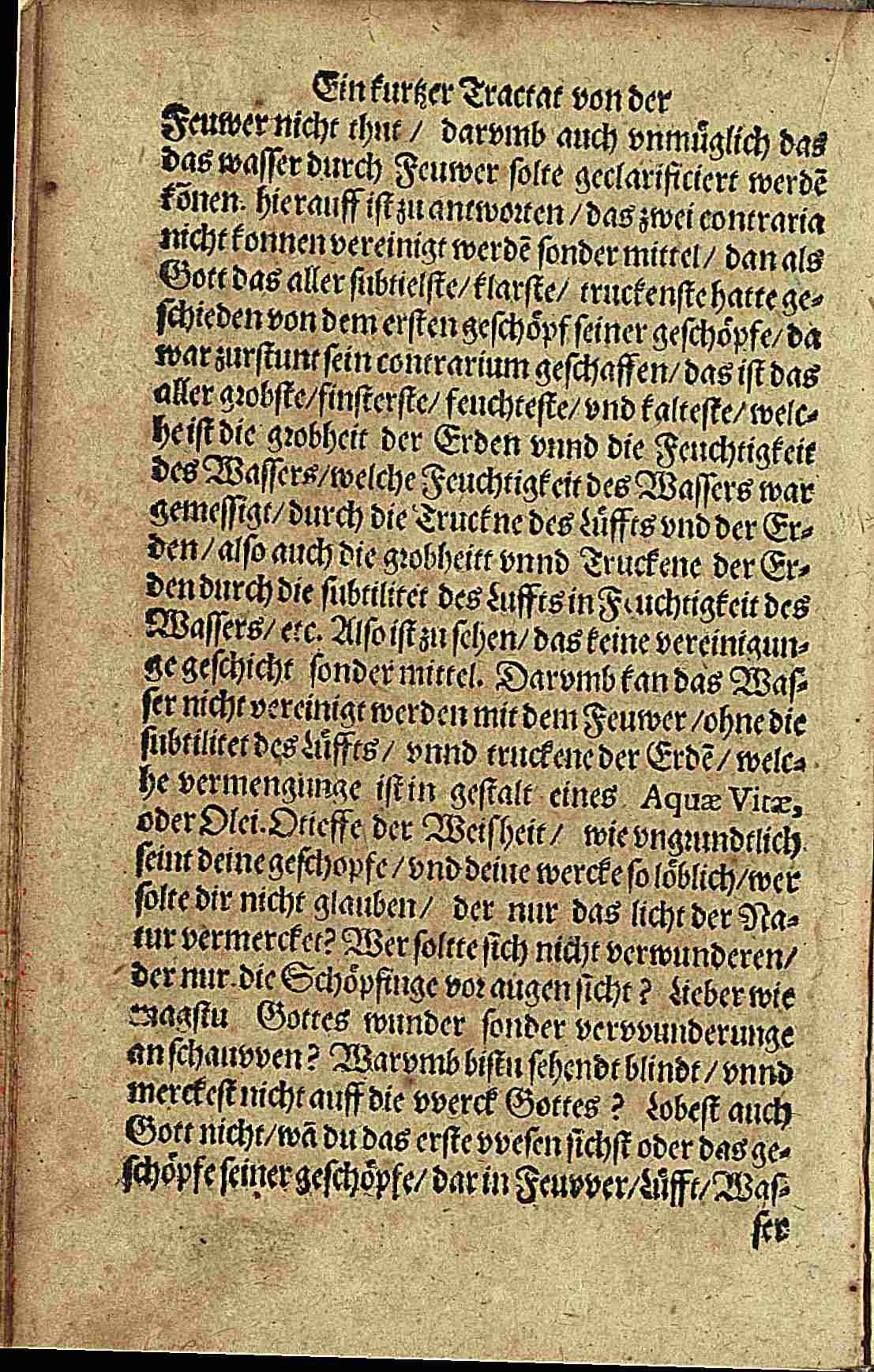 Ein kurtzer Tractat von der Natur Der Elementen Und wie sie den Windt/ Regen/ Blitz vnd Donner vervrsachen/ vnd vvar zu sie nutzen / Durch Cornelium Drebbel in Niederlandisch geschrieben/ vnnd allen der Naturliebhaberen zu nutz ins Hochteutsch getreulich uber gesetzt