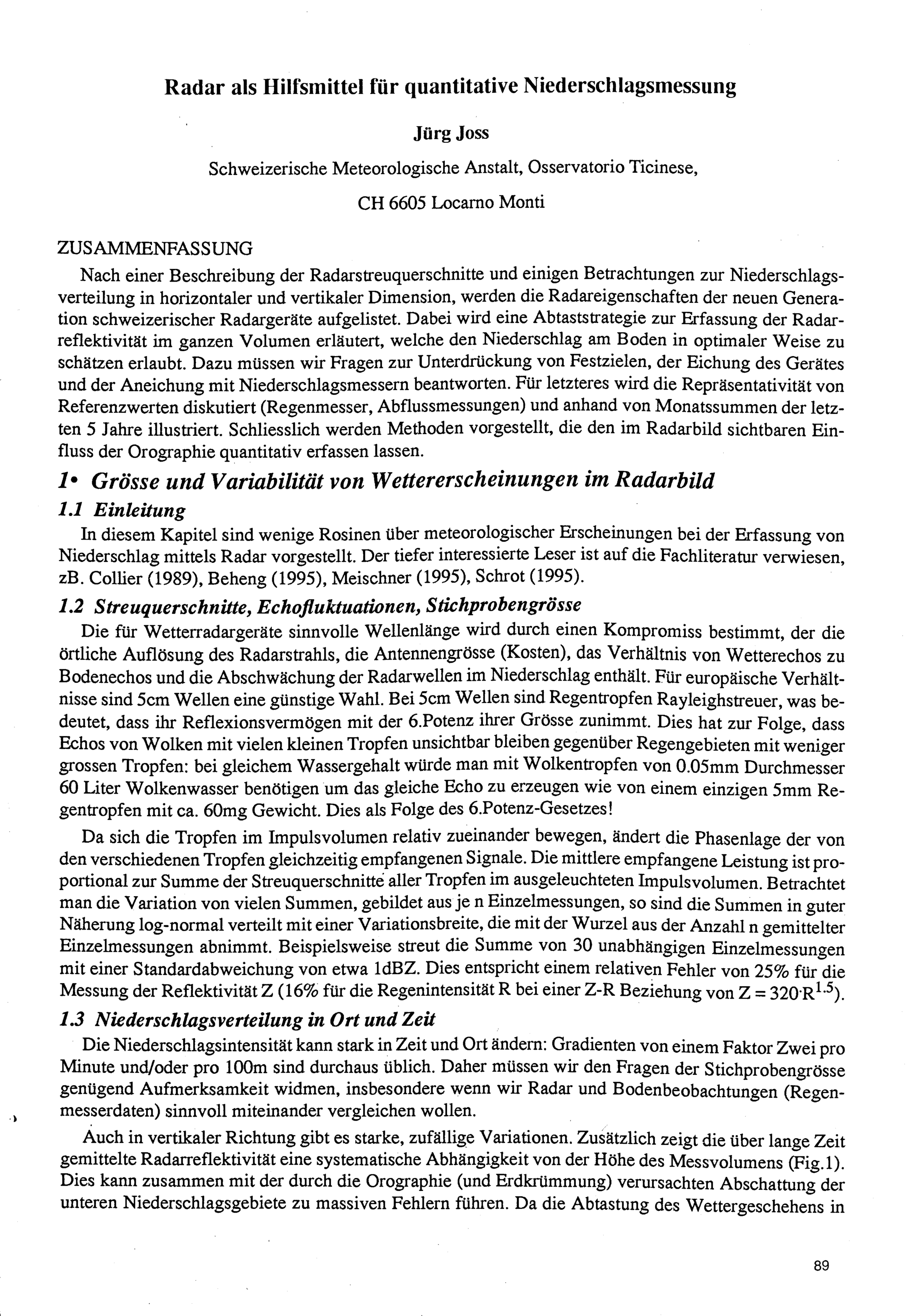 Radar als Hilfsmittel für quantitative Niederschlagsmessung
