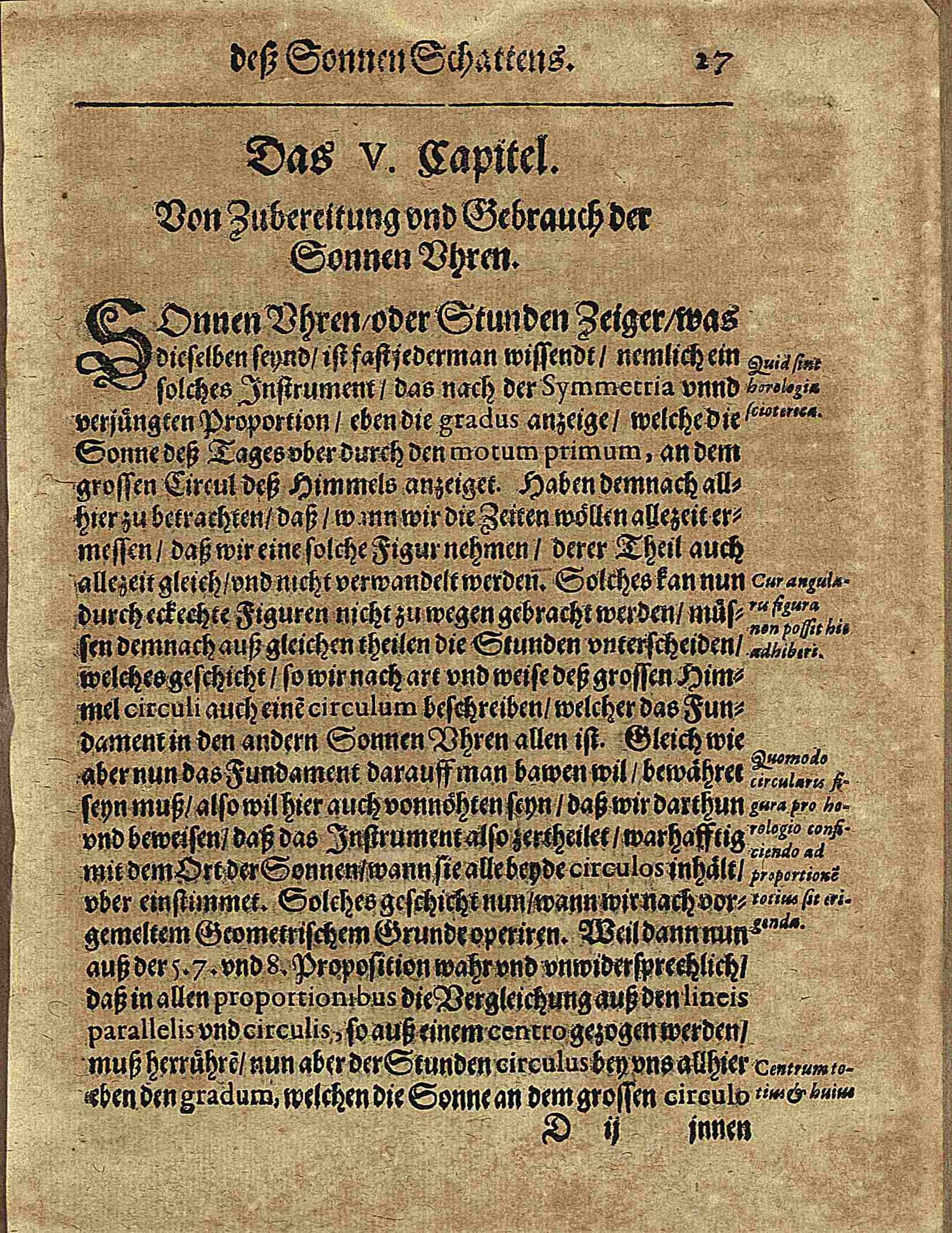 Sciographia Solis : Das ist / Gründliche Beschreibung / von Nutz und Gebrauch deß SonnenSchattens / Jahr / Zeit / Monat / Wochen / Tage / Sunden und Minuten dardurch zu unterscheyden ; Beneben: Ursprung und Außtheilung der Himmlischen Sphaerae ; Wie dann auch ein geringes Instrument / alle SonnenUhren sonder grosse Mühe damit zu verzeichnen ; Alles auß warhafftem Mathematischem Grunde / den Liebhabern dieser Kunst zugefallen in Truck gegeben / durch Iacobum Mullerum Torgensem