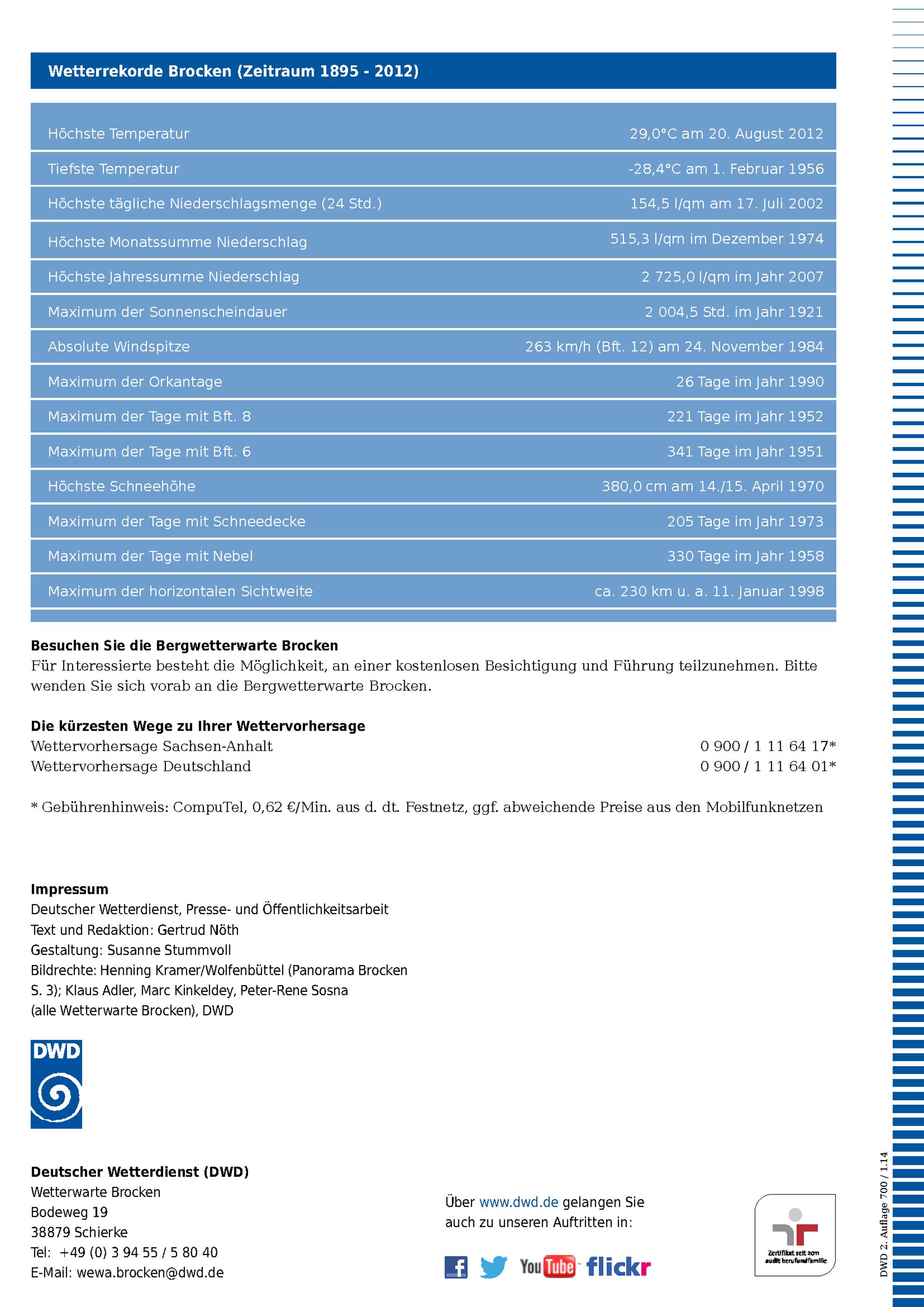Bergwetterwarte Brocken : Vor Ort / Deutscher Wetterdienst. [Text u. Red.: Gertrud Nöth