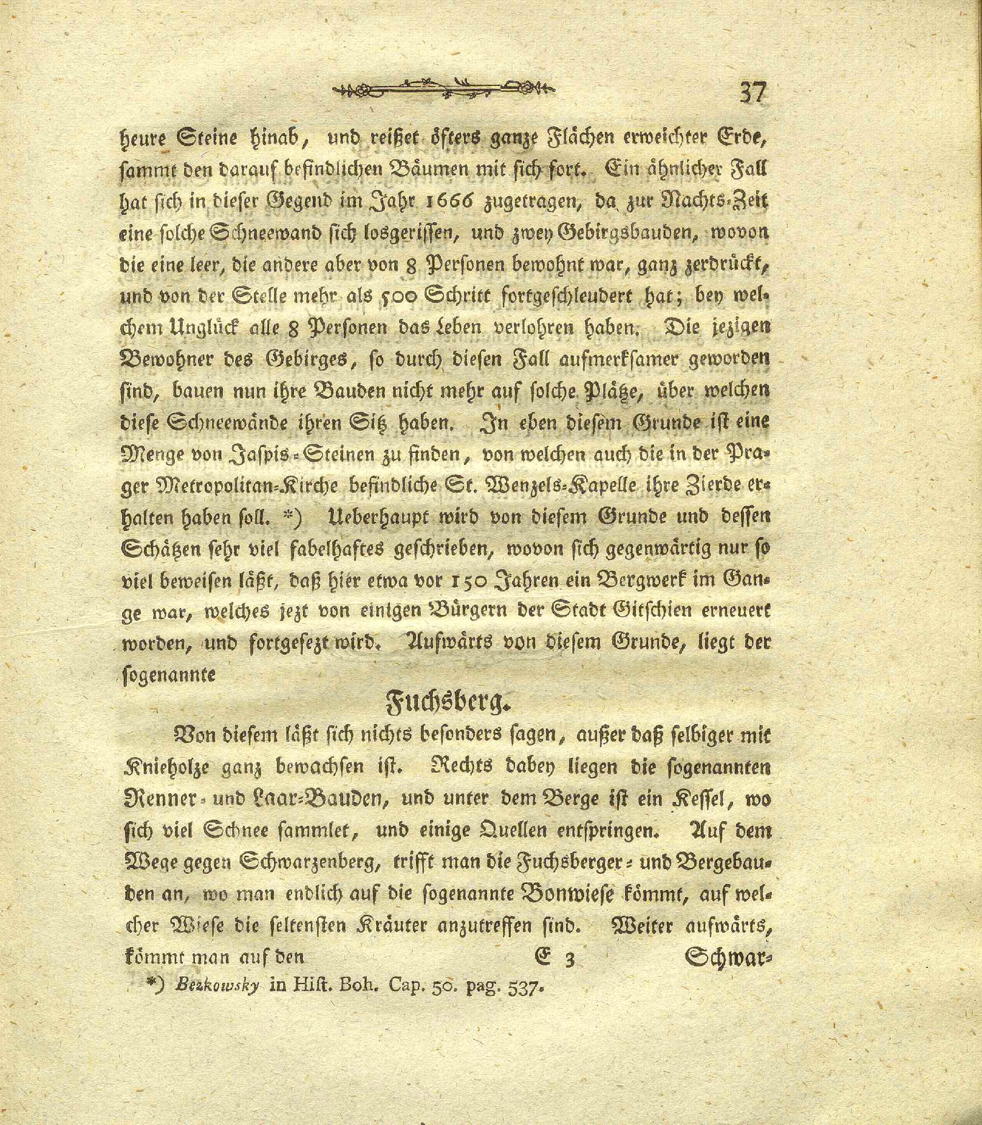 Versuch einer Topographischen Beschreibung des Riesengebirges : mit Physikalischen Anmerkungen; der Böhmischen Gesellschaft der Wissenschaften gewidmet / von Franz Fuß