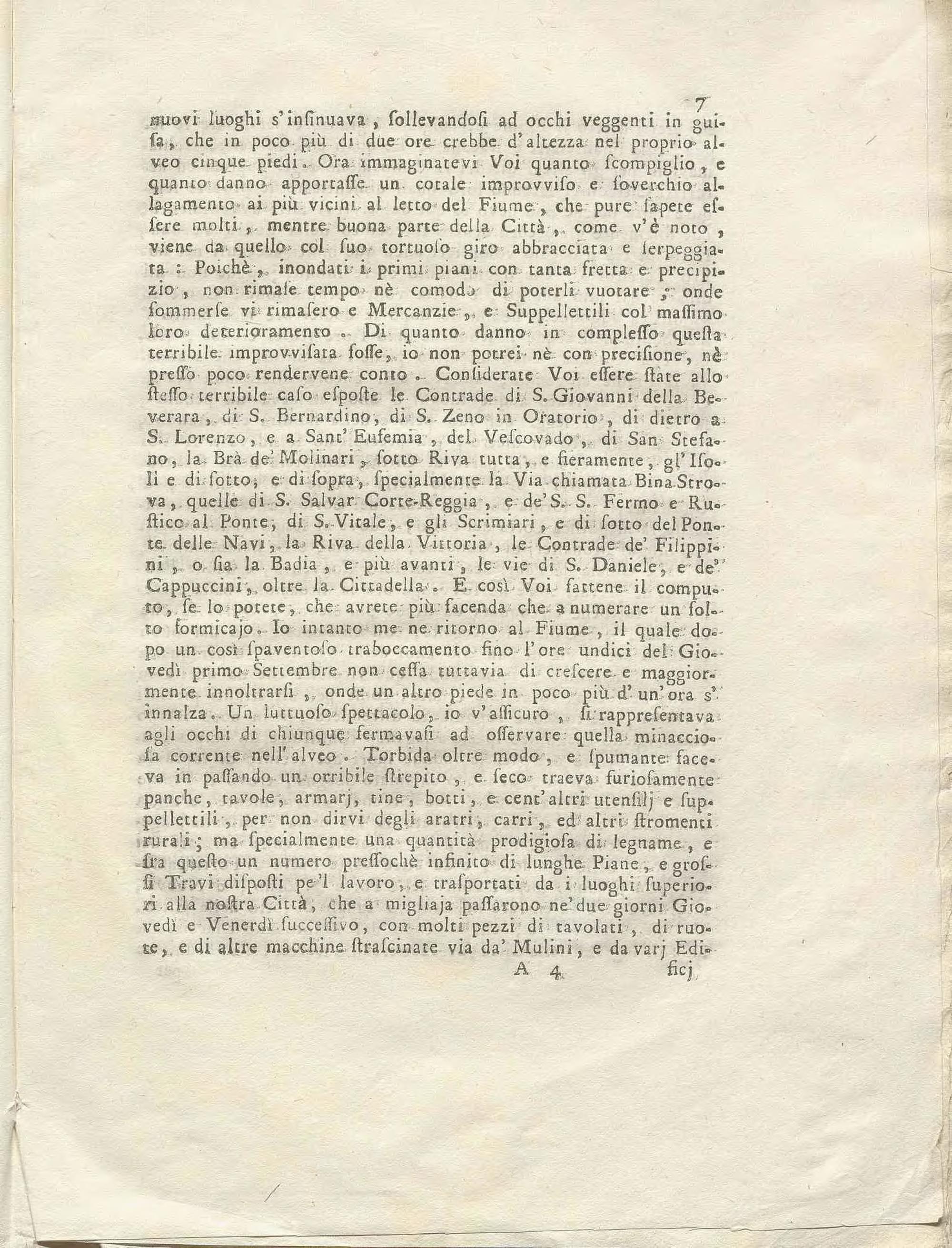 Lettera Famigliare Intorno L' Inondazione Di Verona Ne' due primi giorni di Settembre 1757 / Giambattista Martini Medico Fisico