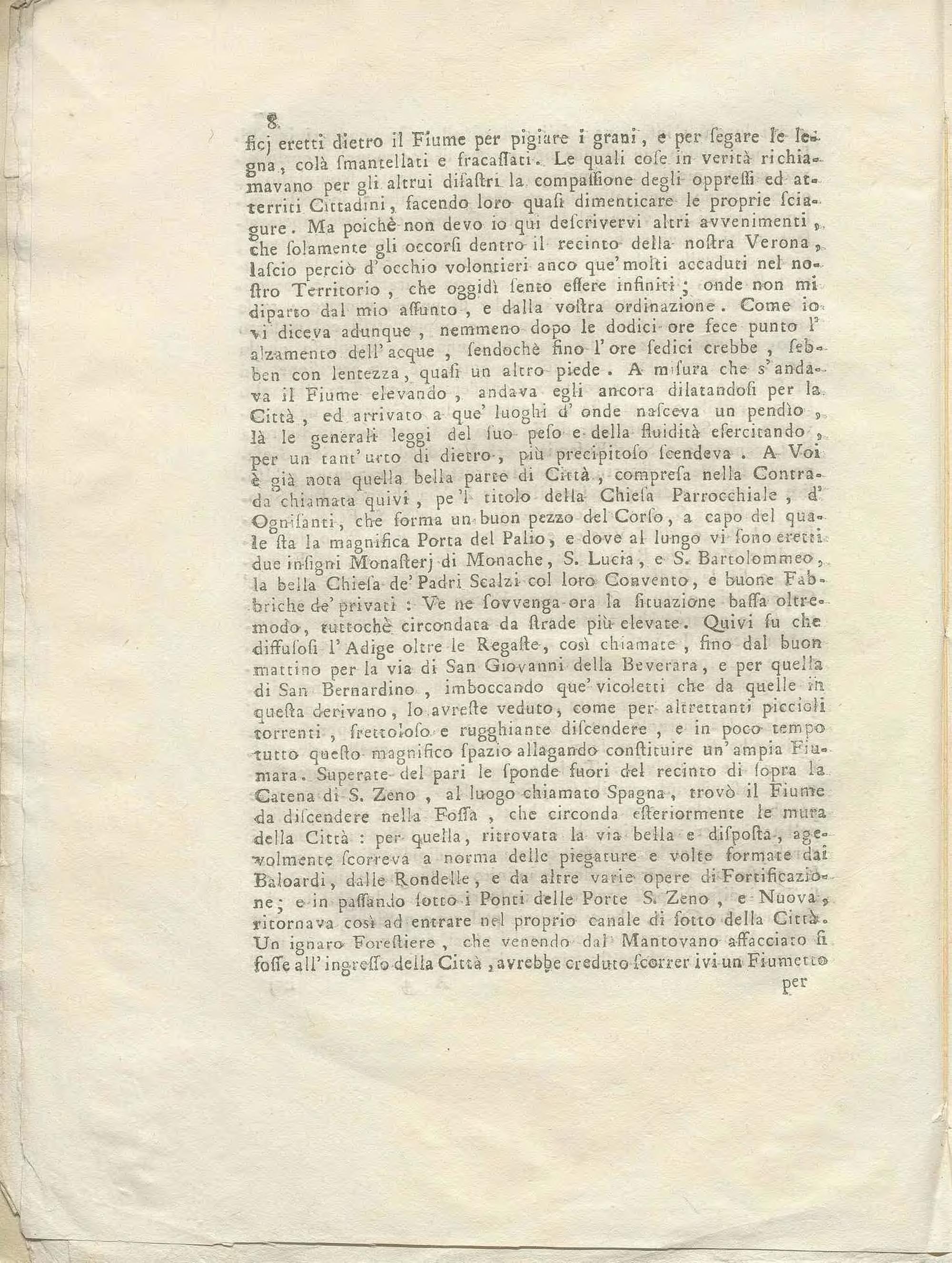 Lettera Famigliare Intorno L' Inondazione Di Verona Ne' due primi giorni di Settembre 1757 / Giambattista Martini Medico Fisico